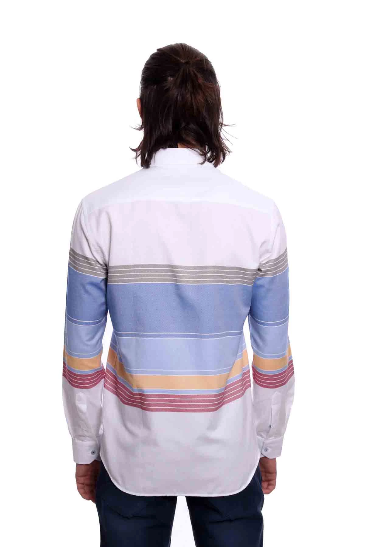 Diandor Uzun Kollu Erkek Gömlek Beyaz Mavi 1912030 2XL