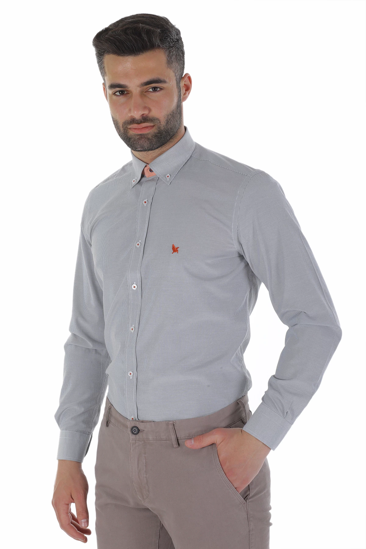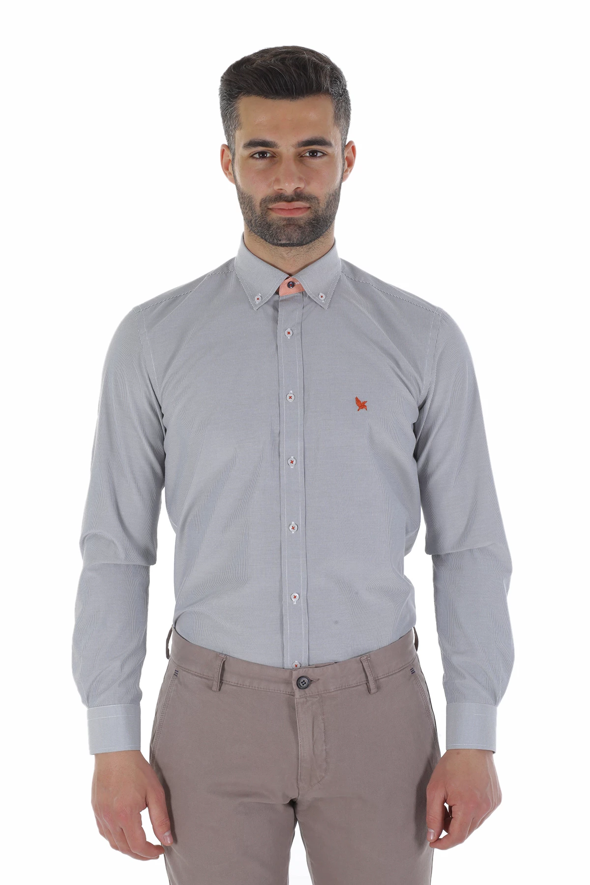 Needion - Diandor Uzun Kollu Erkek Gömlek Gri 1912012 2XL