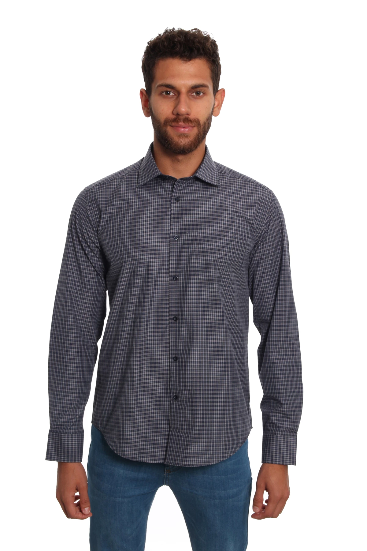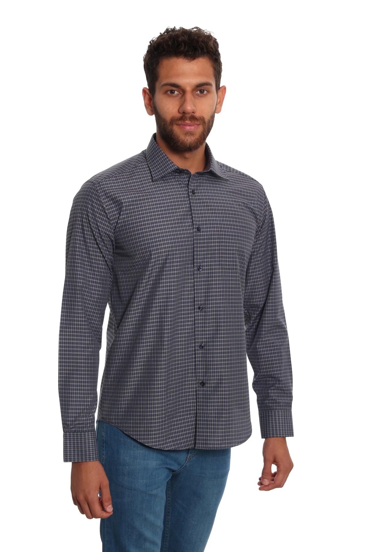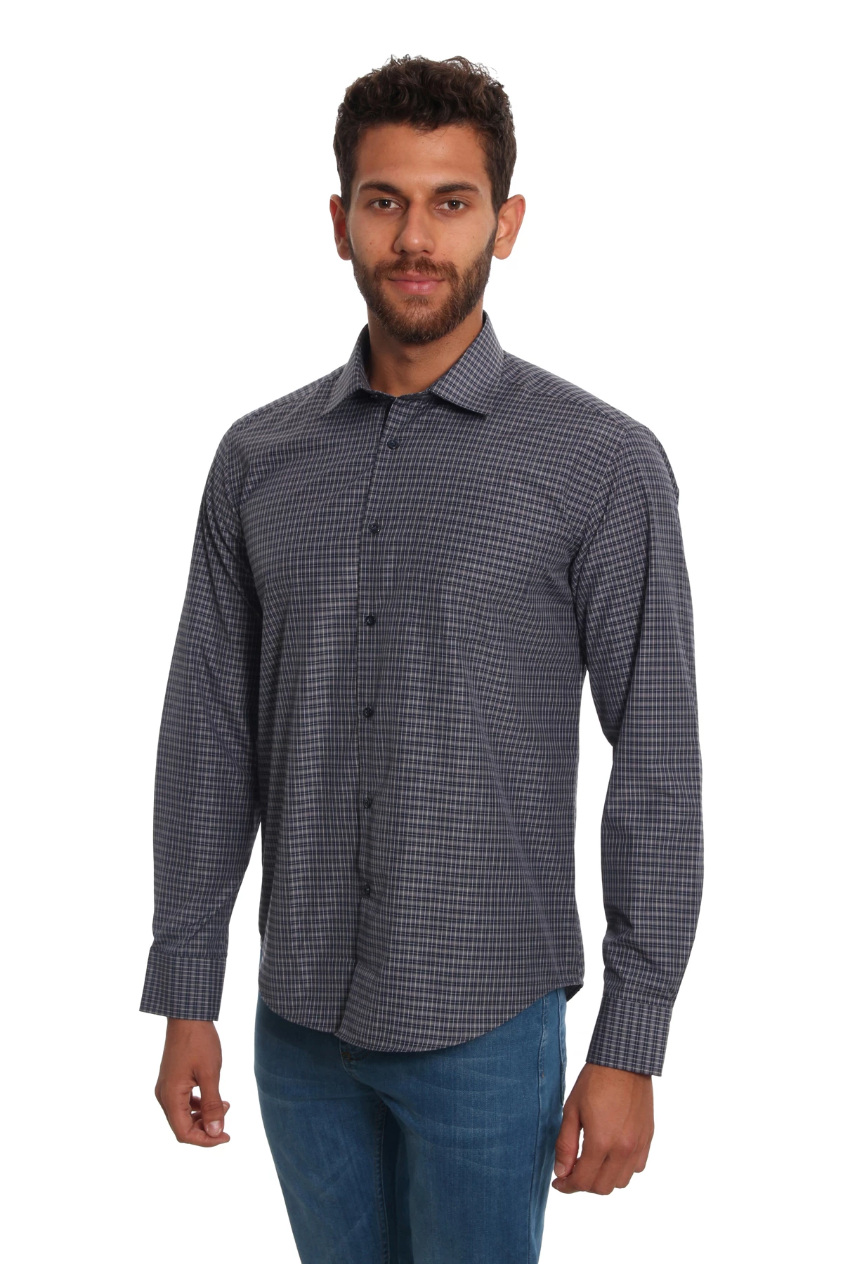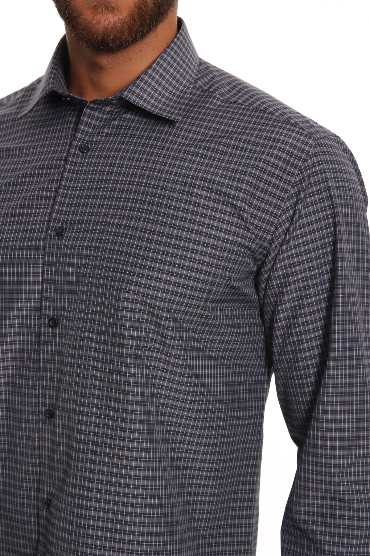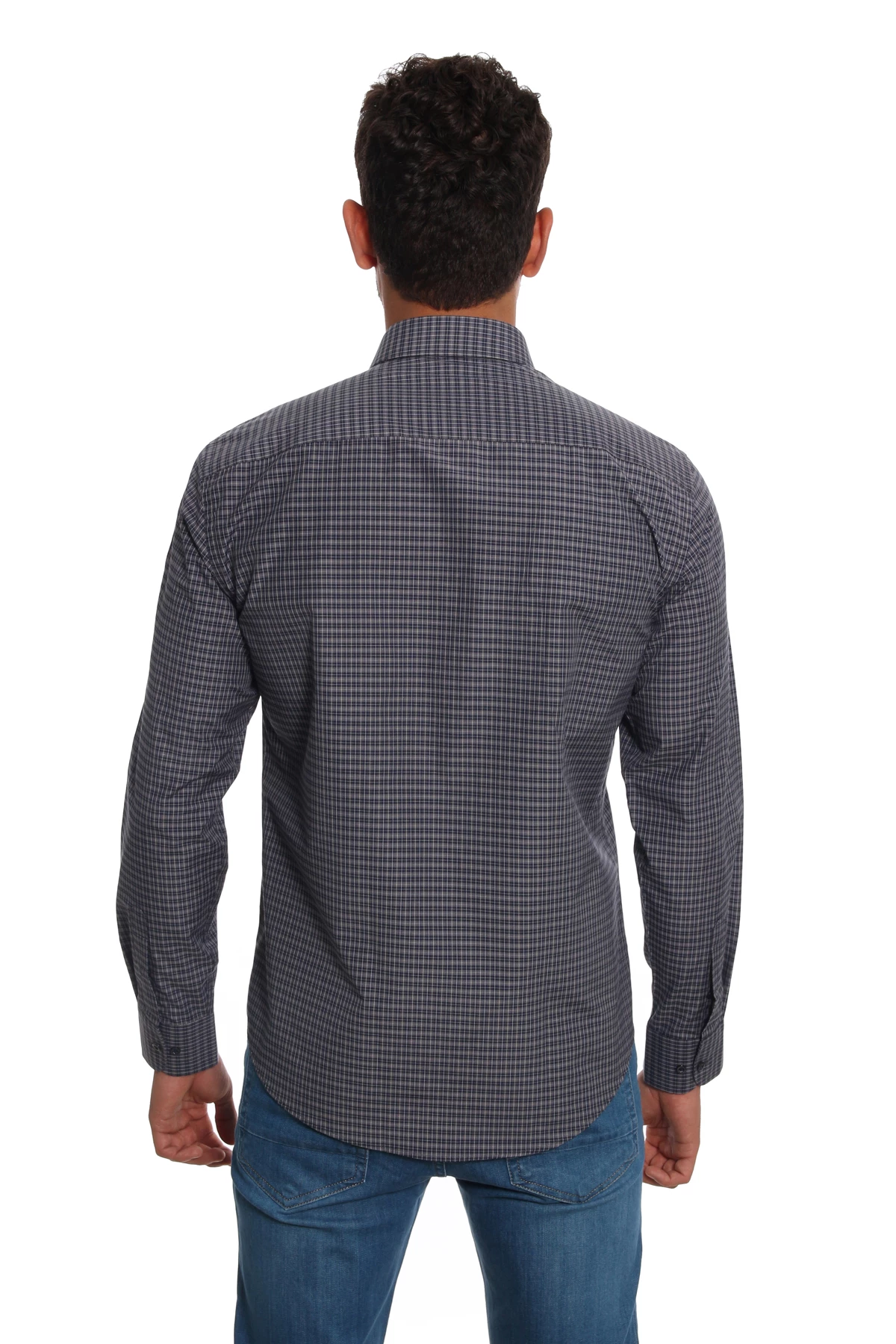 DETAY: Desenli, düz yaka cepsiz erkek gömlek