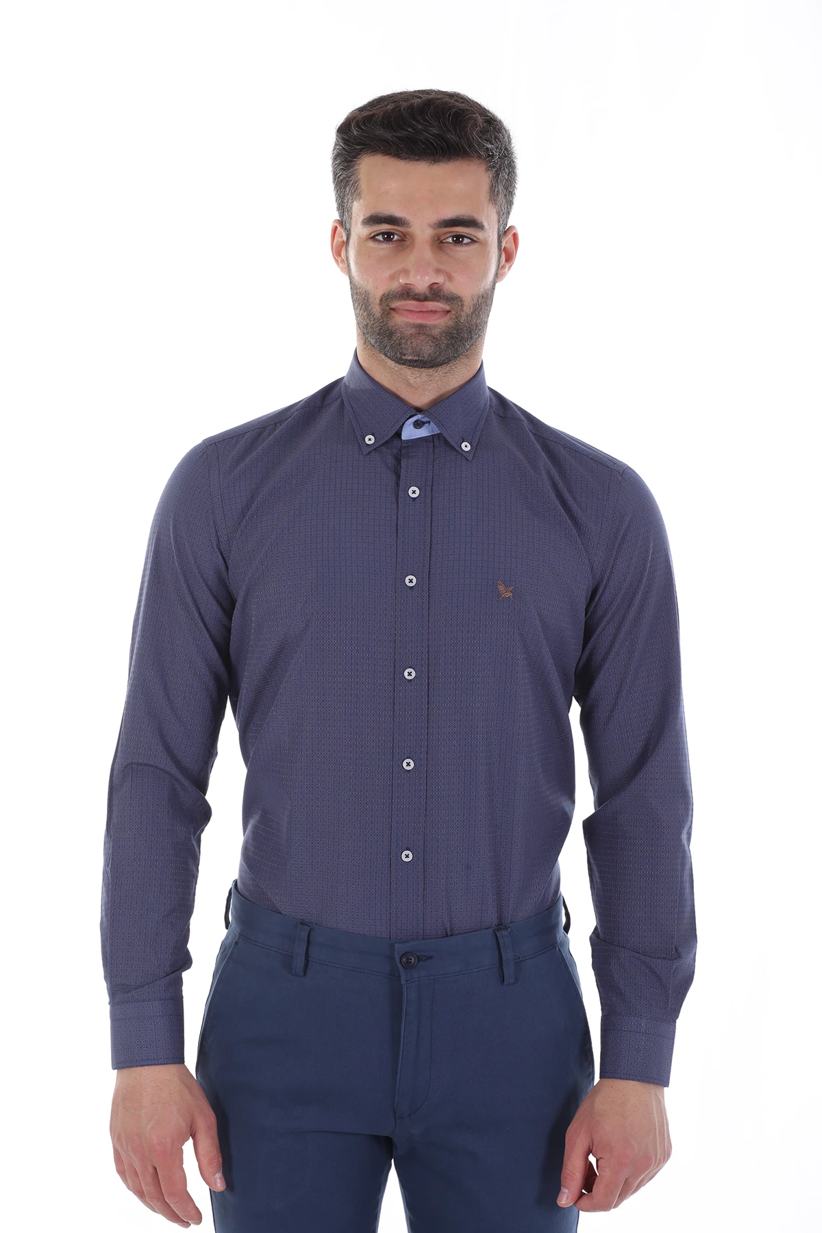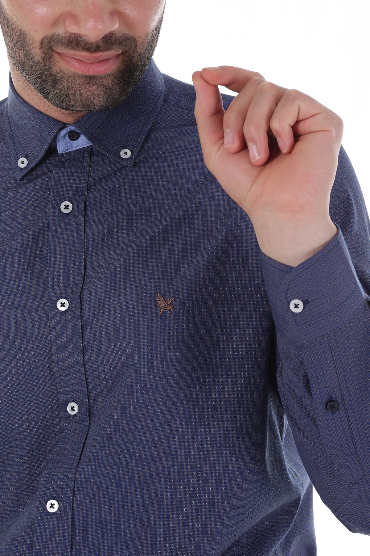 Needion - Diandor Uzun Kollu Erkek Gömlek Lacivert-Kahve 1912012 2XL