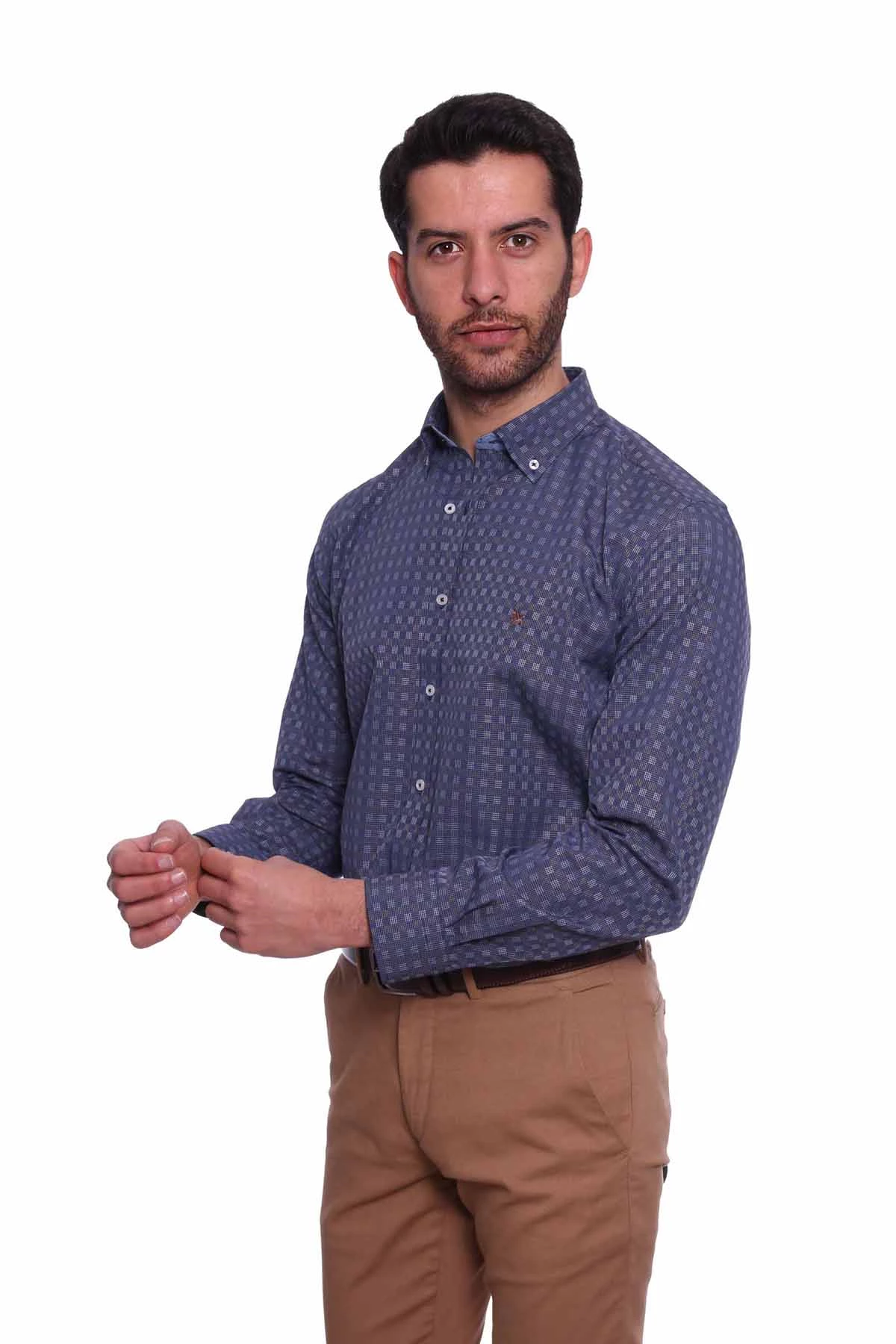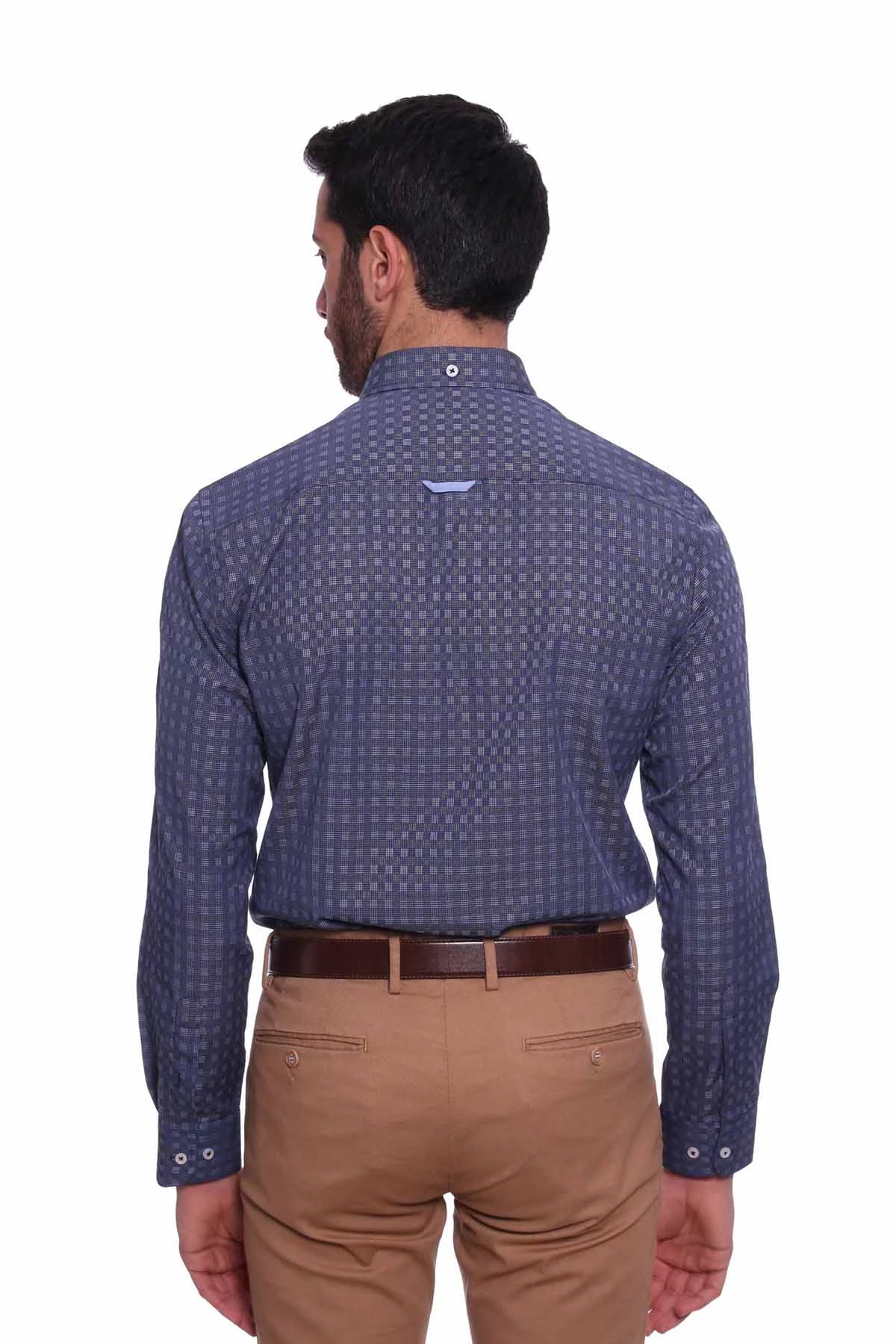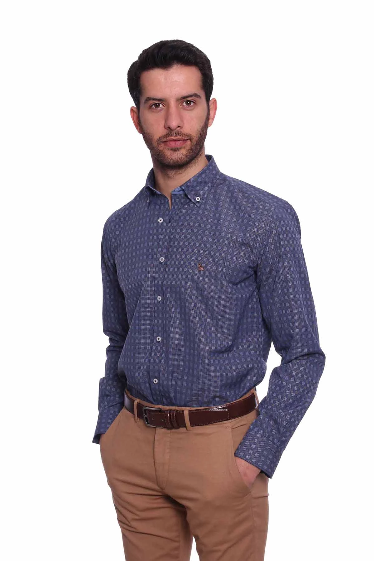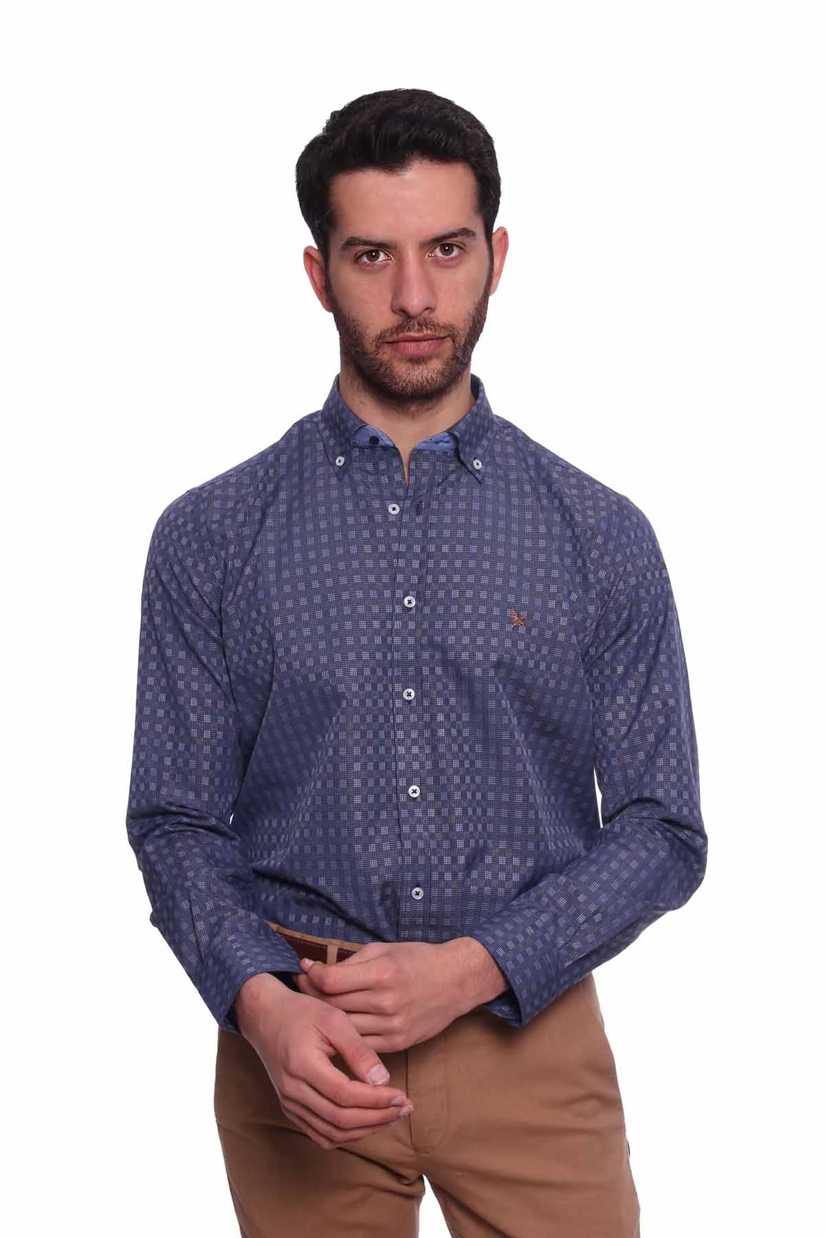 Needion - Diandor Uzun Kollu Erkek Gömlek Lacivert-Vizon 1912012 2XL