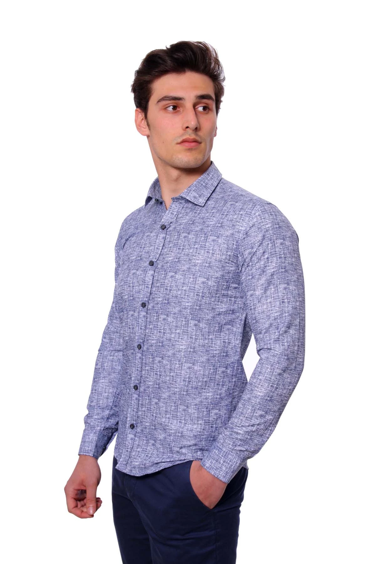 Needion - Diandor Uzun Kollu Erkek Gömlek Lacivert/Navy 1822026 Lacivert/Navy M ERKEK
