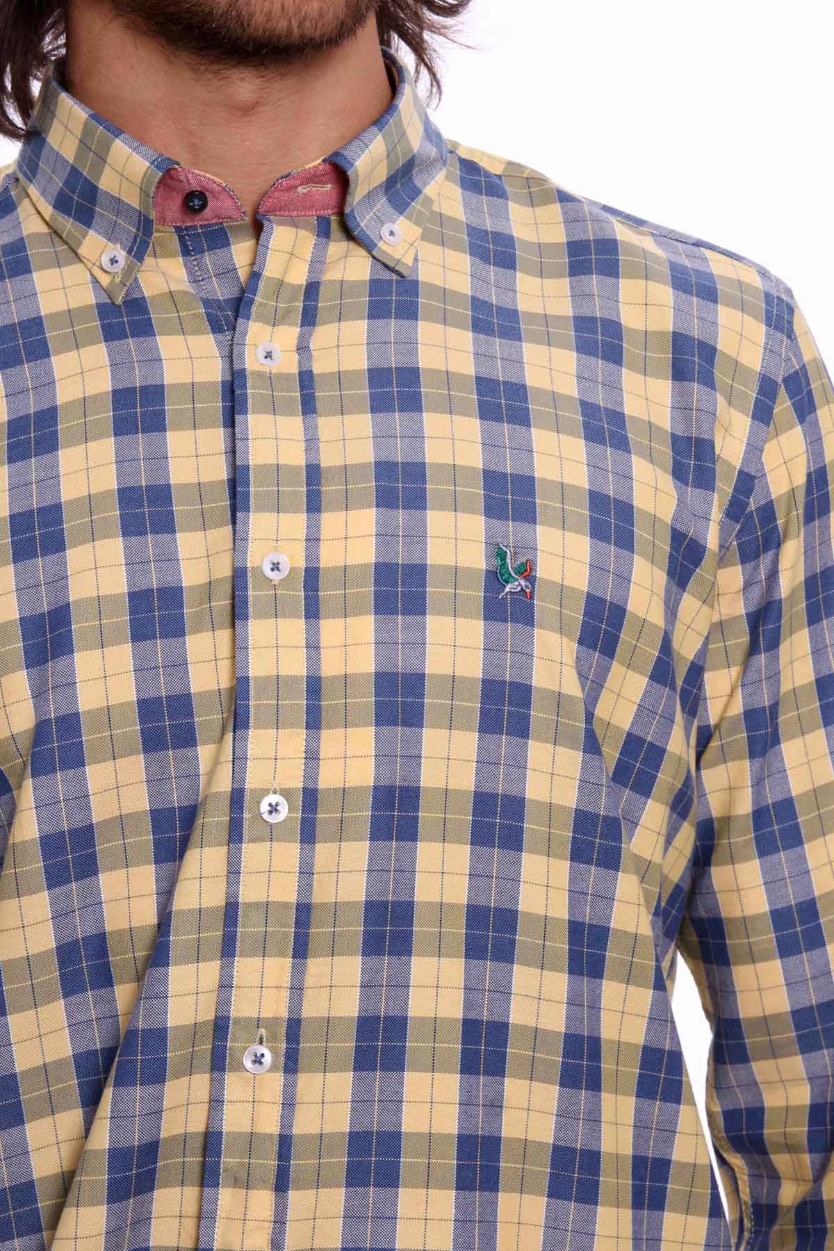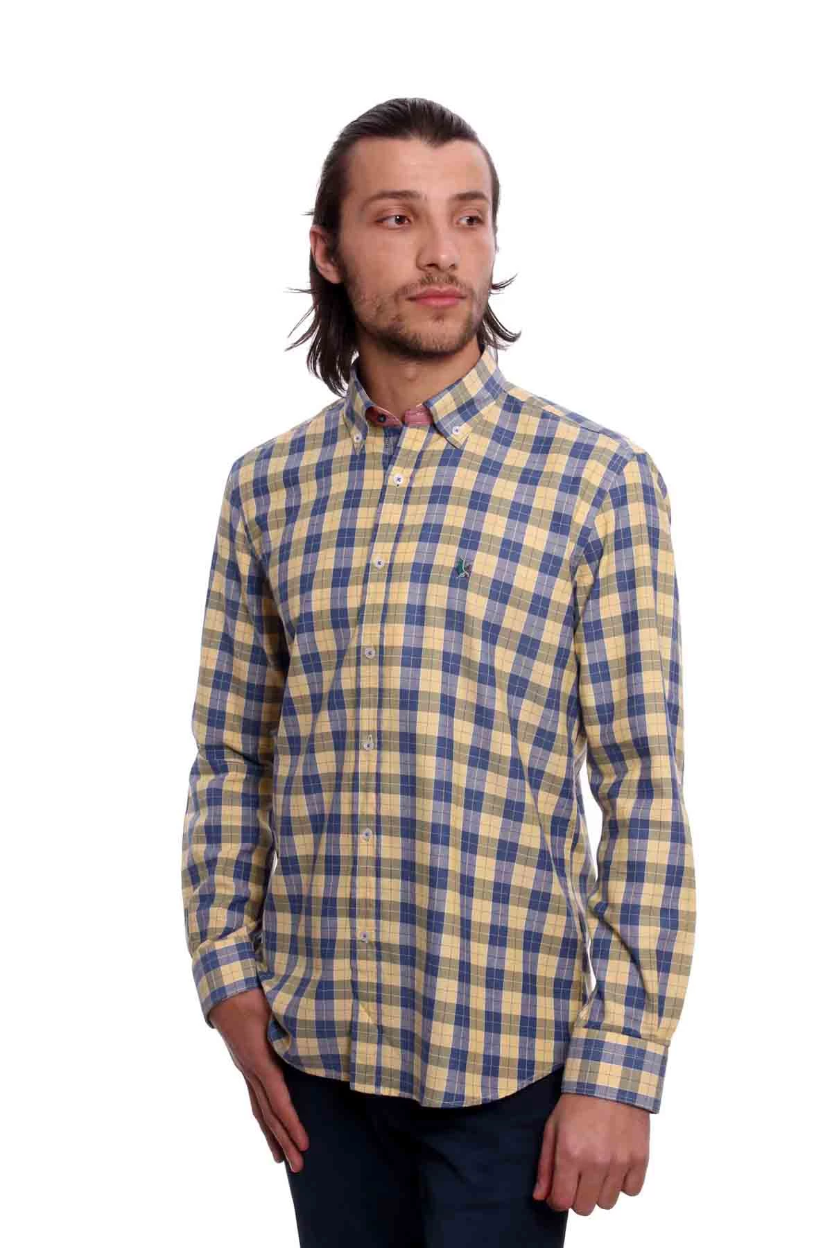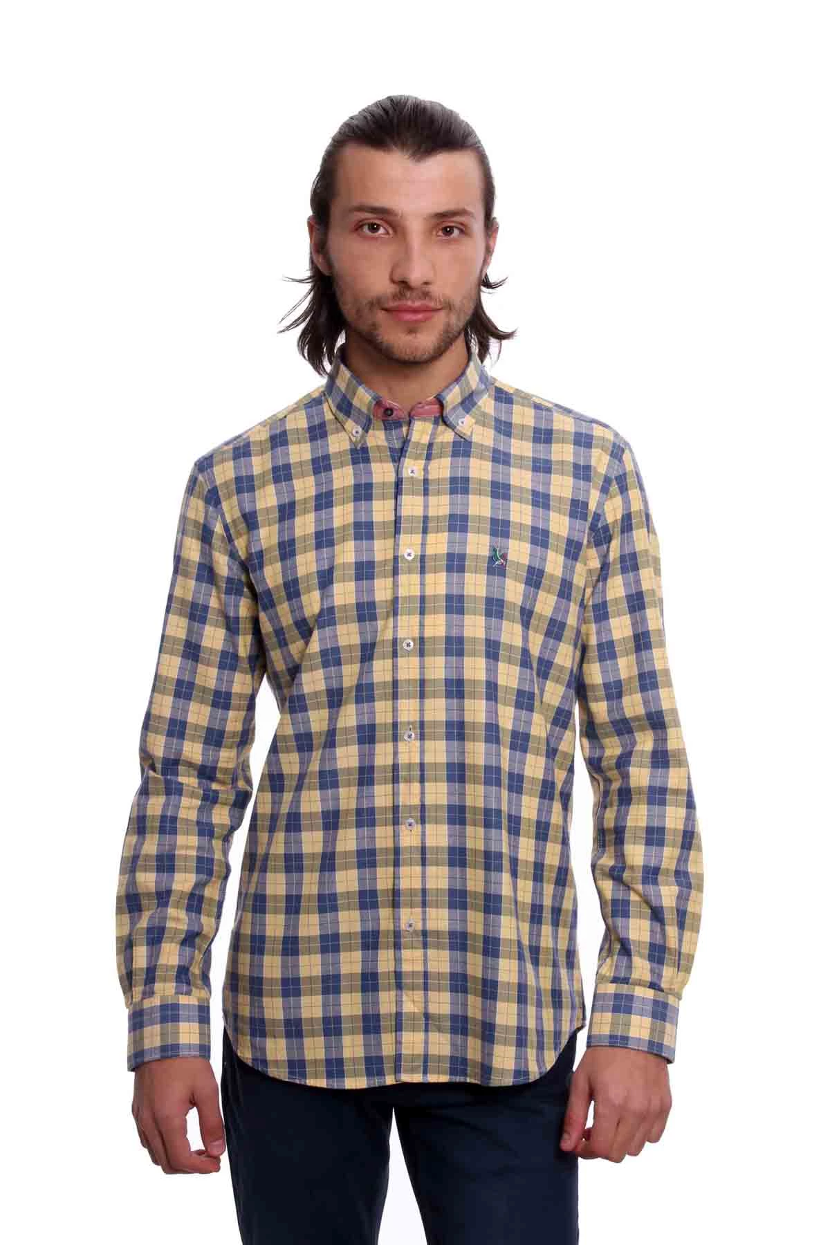 Needion - Diandor Uzun Kollu Erkek Gömlek Sarı-Lacivert 1912009 Sarı-Lacivert 2XL
