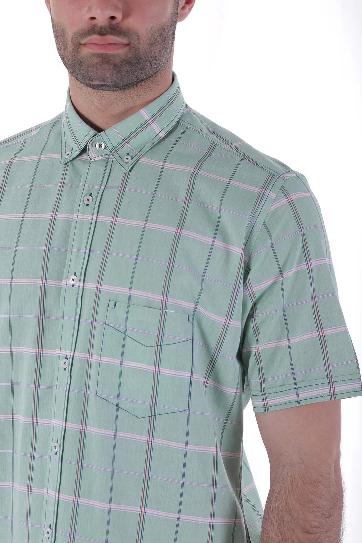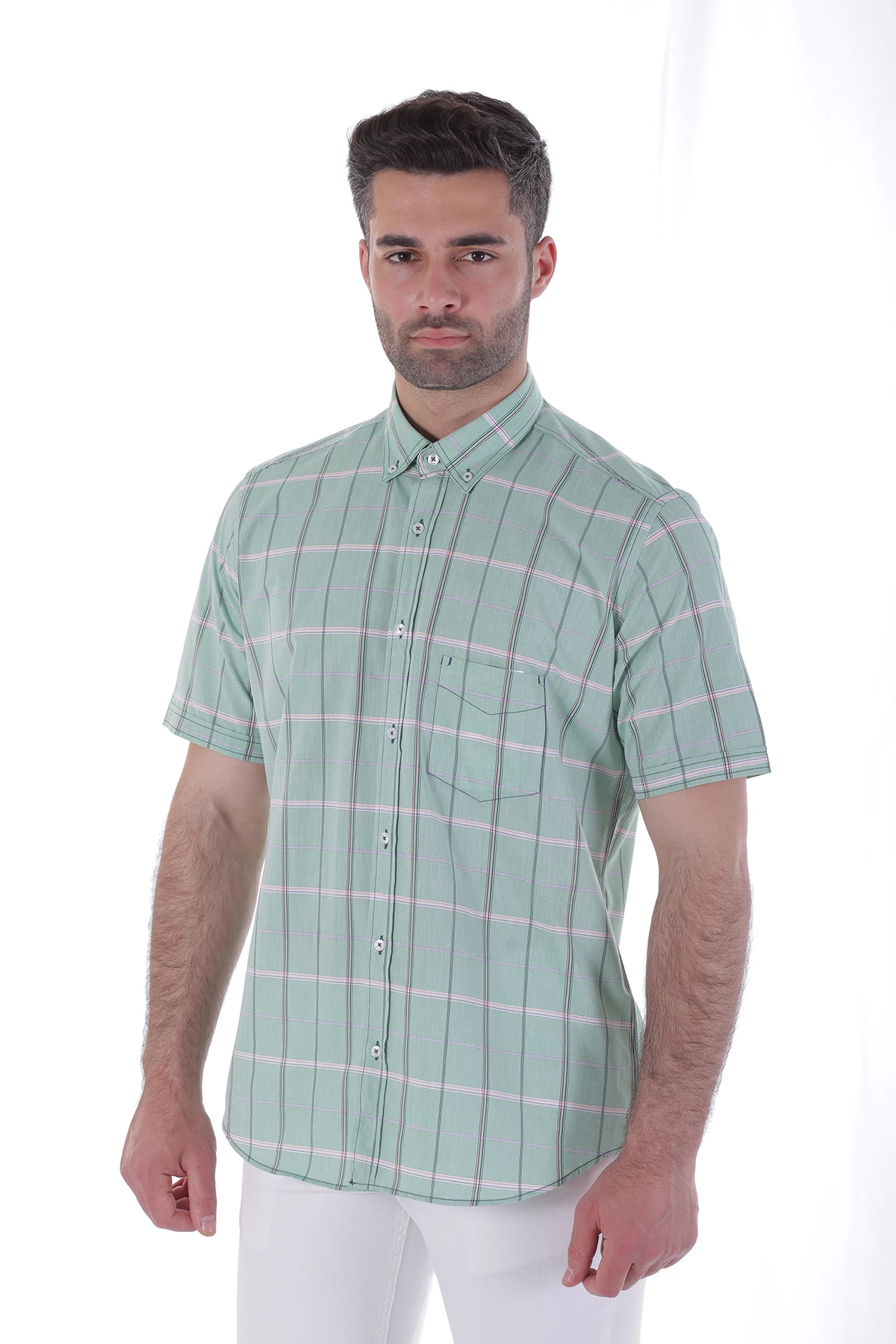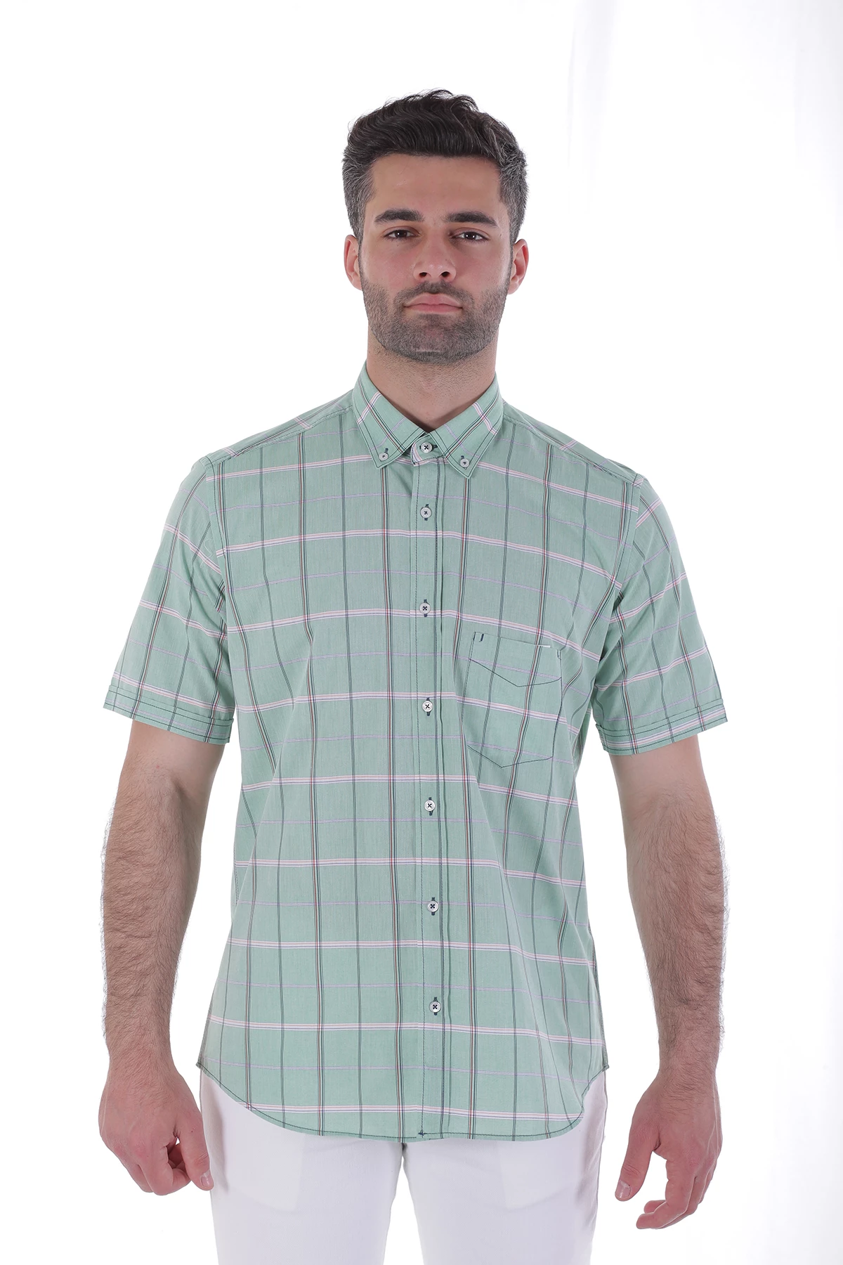 Needion - Mıller&monroe Kısa Kollu Erkek Gömlek Yeşil/Green MILLER 1242 Yeşil 2XL