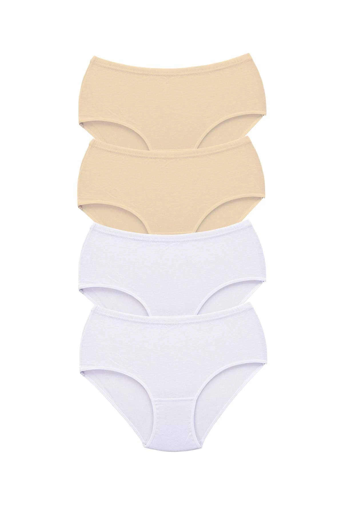 4 Adet Tutku Kadın Yüksek Bel Bato Kalın Lastik Külot Ten Beyaz