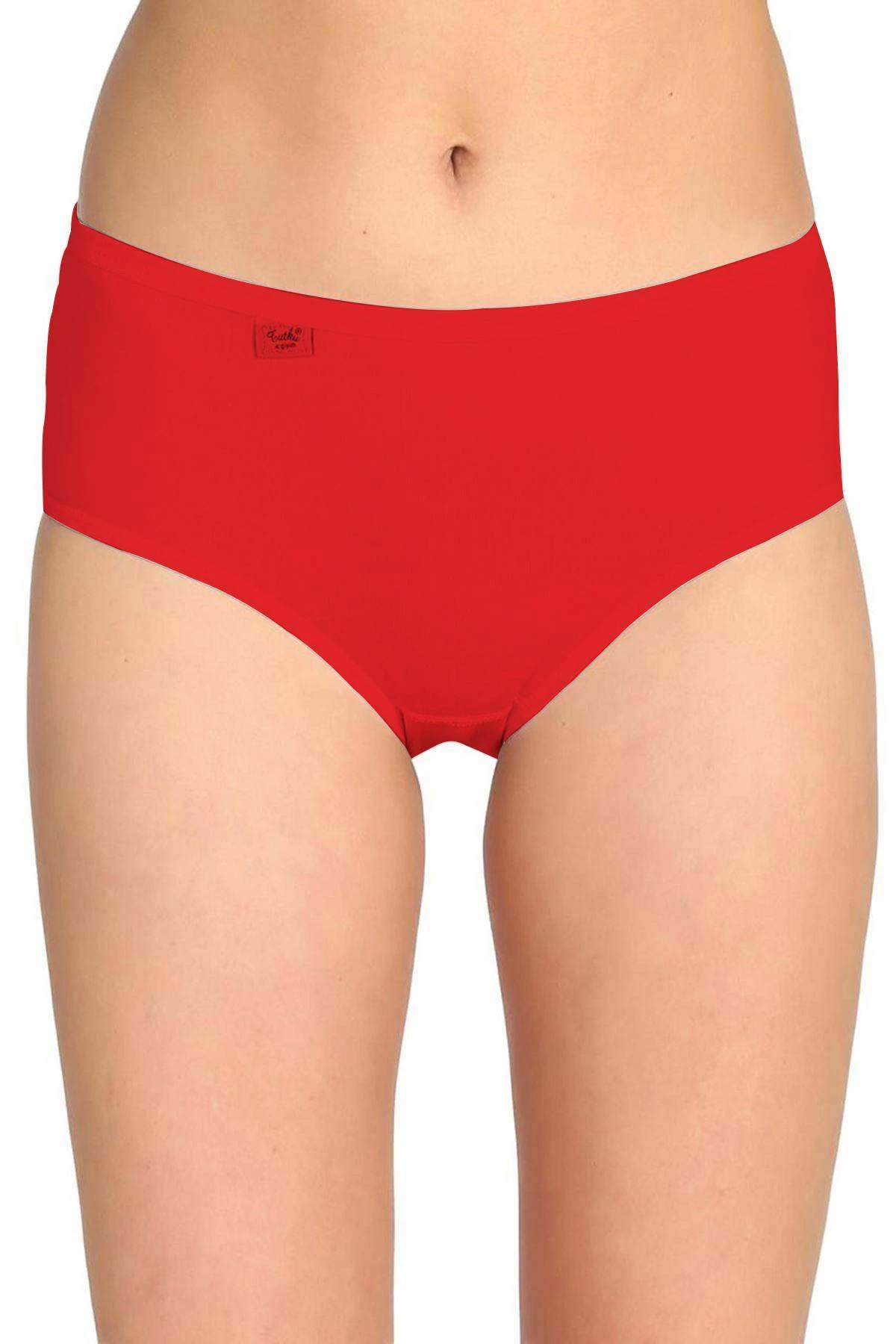 Needion - 6 Adet Tutku Kadın Yüksek Bel Bato İnce Lastik Külot Kırmızı M Kırmızı