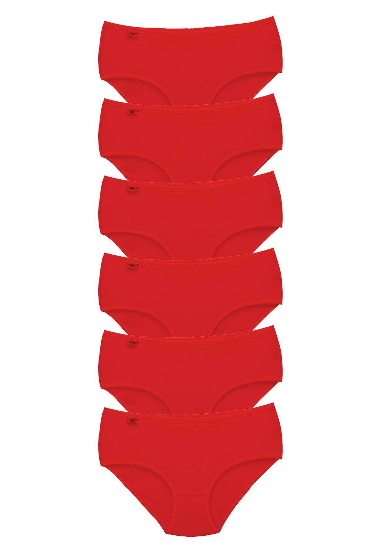 6 Adet Tutku Kadın Yüksek Bel Bato İnce Lastik Külot Kırmızı