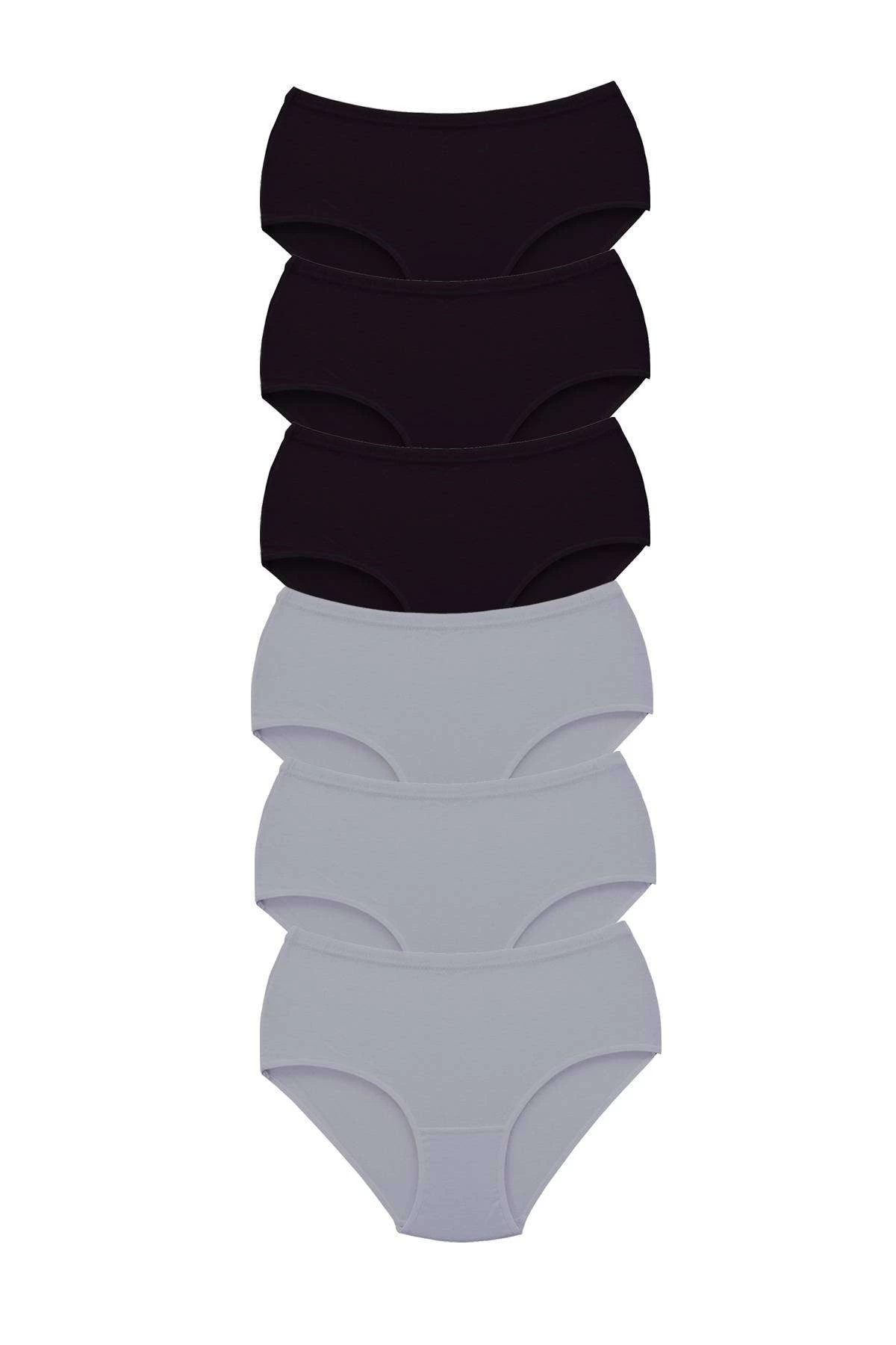 6 Adet Tutku Kadın Yüksek Bel Bato Kalın Lastik Külot Siyah Gri