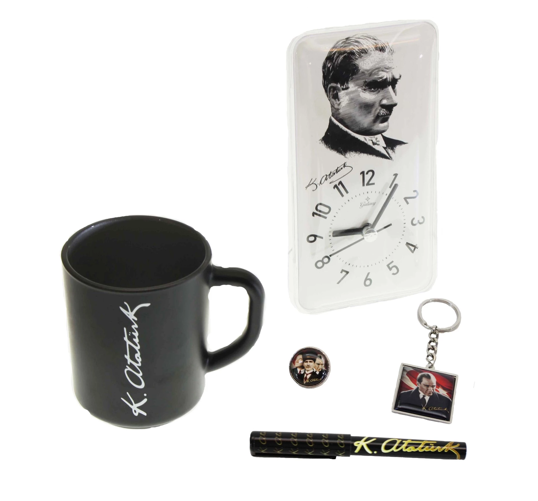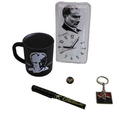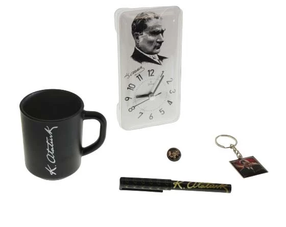 Atatürk Temalı Ofis Set Kupa Kalem Rozet Saat Anahtarlık Renkli