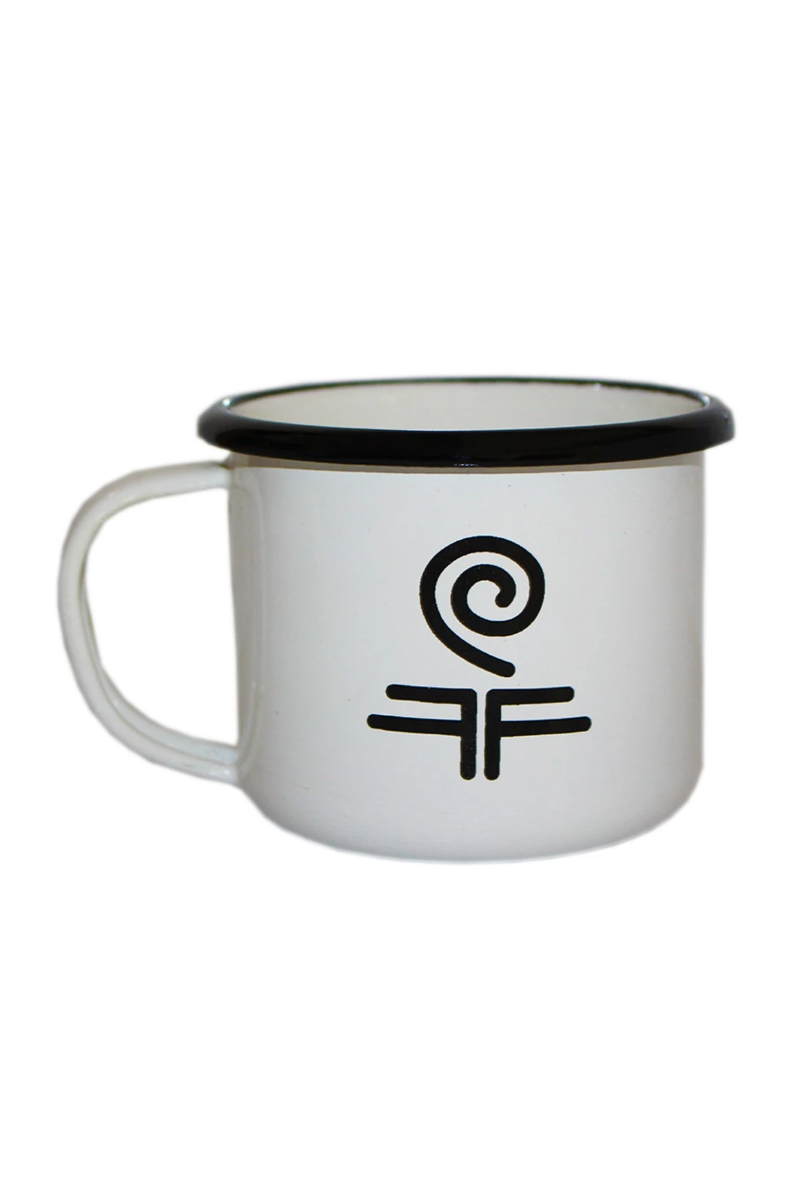 Needion - Beyaz Desenli Emaye Kupa Düzen 350 ml Kulplu Bardak 6075 Renkli