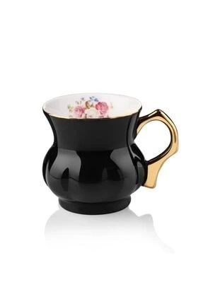 Fiore Siyah Renk Altın Yaldızlı Porselen Kupa