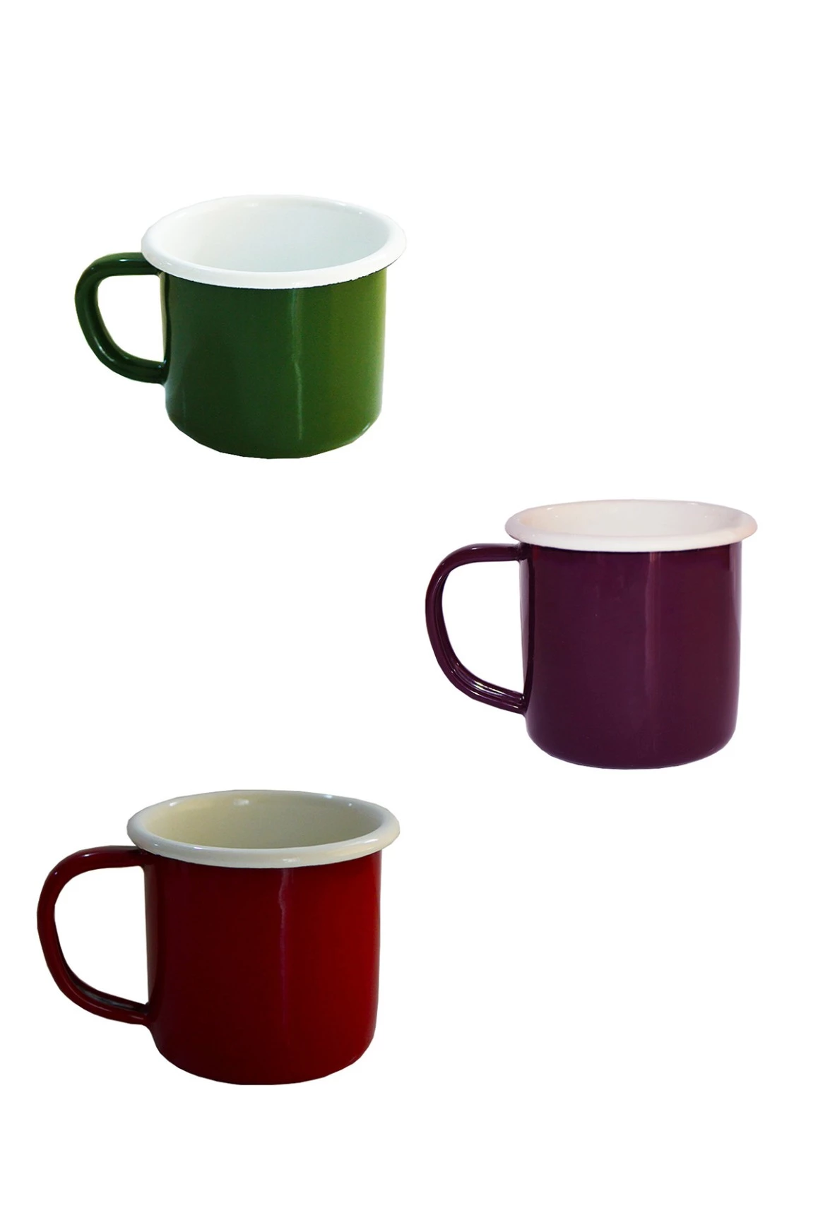 Renkli Emaye Kupa 250 ml 3 Adet Kulplu Bardak Renkli