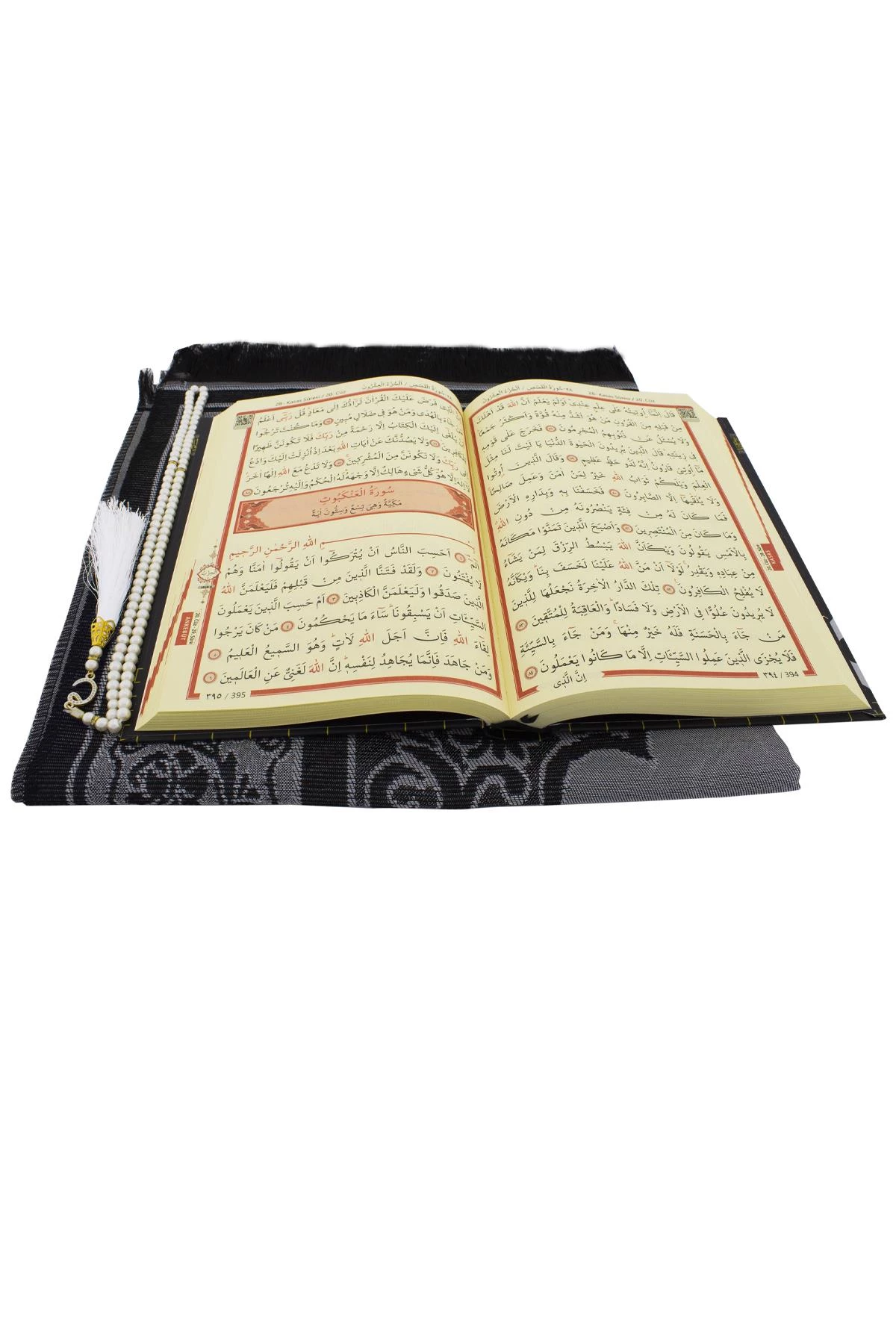 Kuranı Kerim Krem Hafız Boy Siyah Seccade Beyaz İnci Tesbih Seti