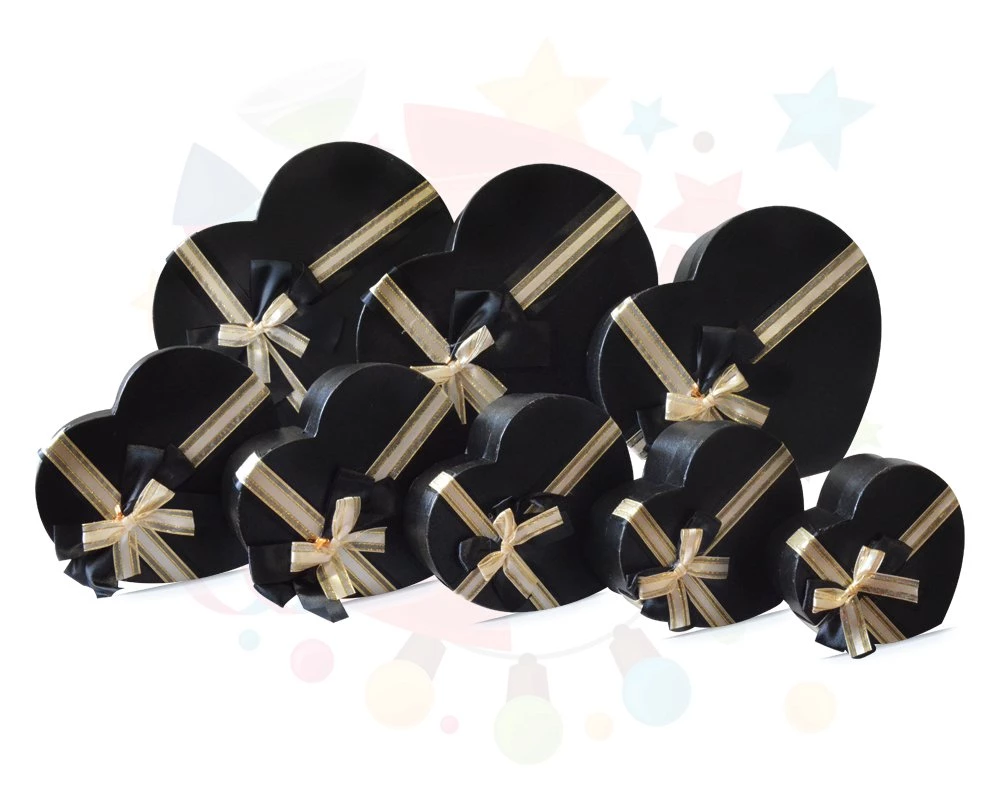 Kutu Kalp Fiyonklu Siyah 8'li Set