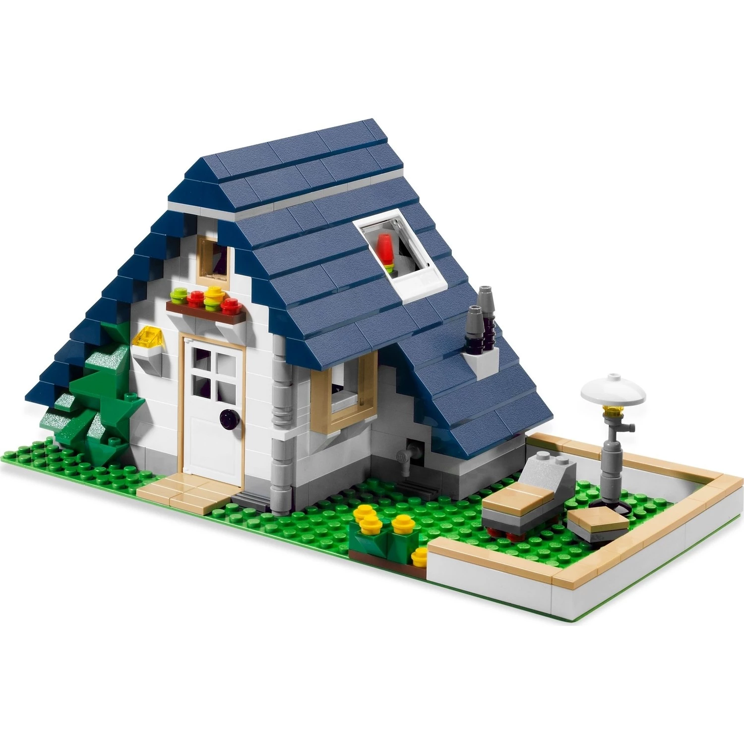 3'ü 1 arada klasik bir aile evi inşa edin! Dışarıda bir elma ağacı olan bu modern kır evi, içindeki harflerle bir çalışma kutusu, çatıda bir uydu çanağı, bir basketbol ağı ve çim biçme makinesi, açılış da dahil olmak üzere eğlenceli ve gerçekçi detaylarla doludur. ön ve garaj kapıları, tavan arasında bir merdiven ve daha fazlası! Yüksek bir şehir evine veya dinlendirici bir yaz evine yeniden inşa etmek için 3'ü 1 arada talimatlar içerir. kutu, çim biçme makinesi, dış ışık, bahçede su musluğu ve çok daha fazlası! Çatıyı kaldırın ve içeride oynayın! 1 modelde 3 model! Uzun bir konakta veya yazlık evde yeniden inşa edin!
