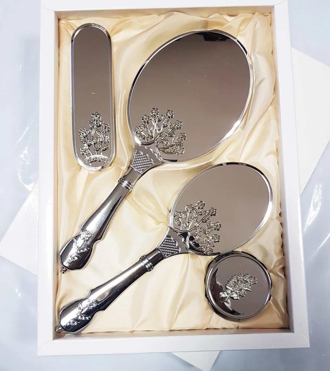 Needion - Alyans Broşlu 4'lü Ayna Fırça Pudralık Seti 0018