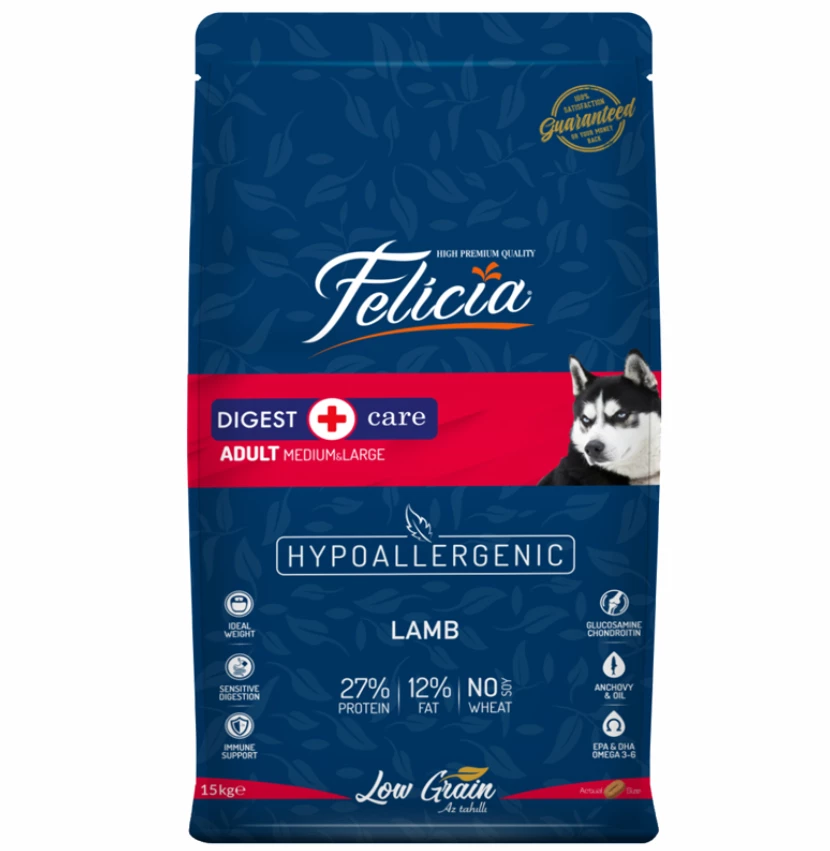 Felicia Düşük Tahıllı Kuzu Etli Orta ve Büyük Irk Yetişkin Köpek Maması 15 KG