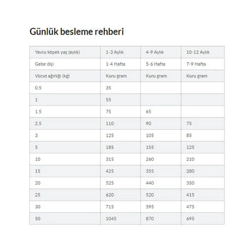 1 yaşına kadar yavru köpekler, hamile veya emziren köpekler.