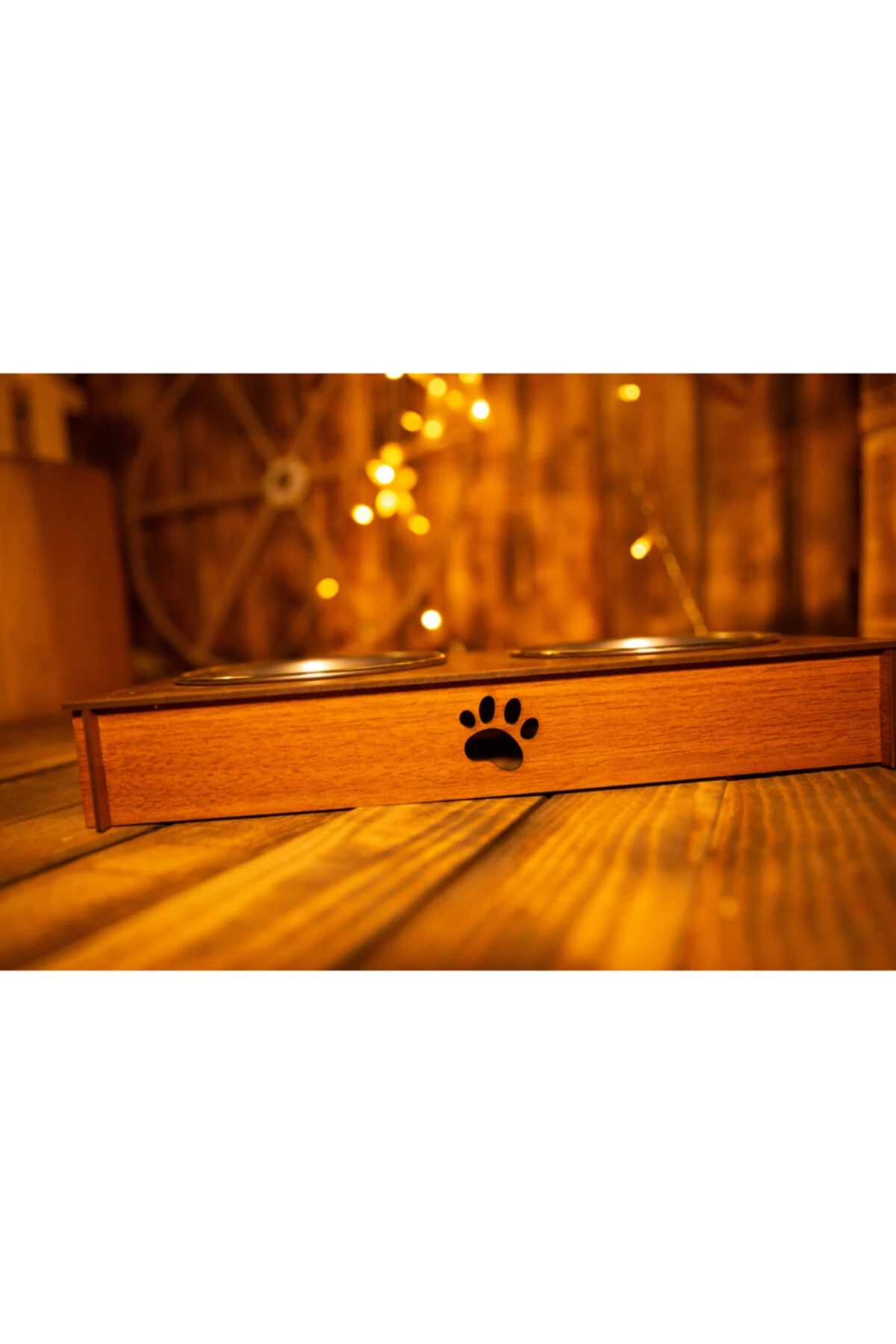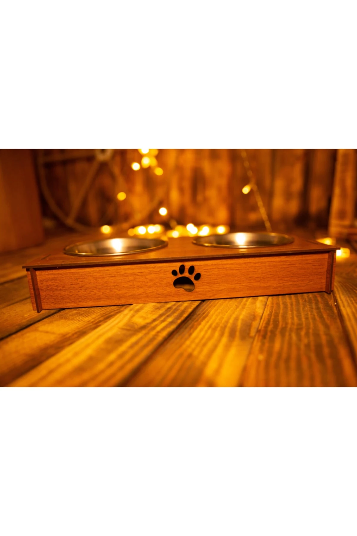 Köpekler ve kediler için kullanılabilecek özel tasarım ahşap mama ve su kabı patili dostlarımız için konforlu bir kullanım alanı sunuyor. Su ve Mama için farklı iki alan barındırıyor. Temizlemesi kolay. Rahatlıkla çıkarılıp tekrar eski yerine takılabilir. Ürün paslanmaz çelik kaplar ve Mdf malzemeden üretiliyor. Mama kabı ölçüleri 14 cm çap. Malzeme Bilgileri Paslanmaz çelik mama kapları Mdf lam ahşap malzeme