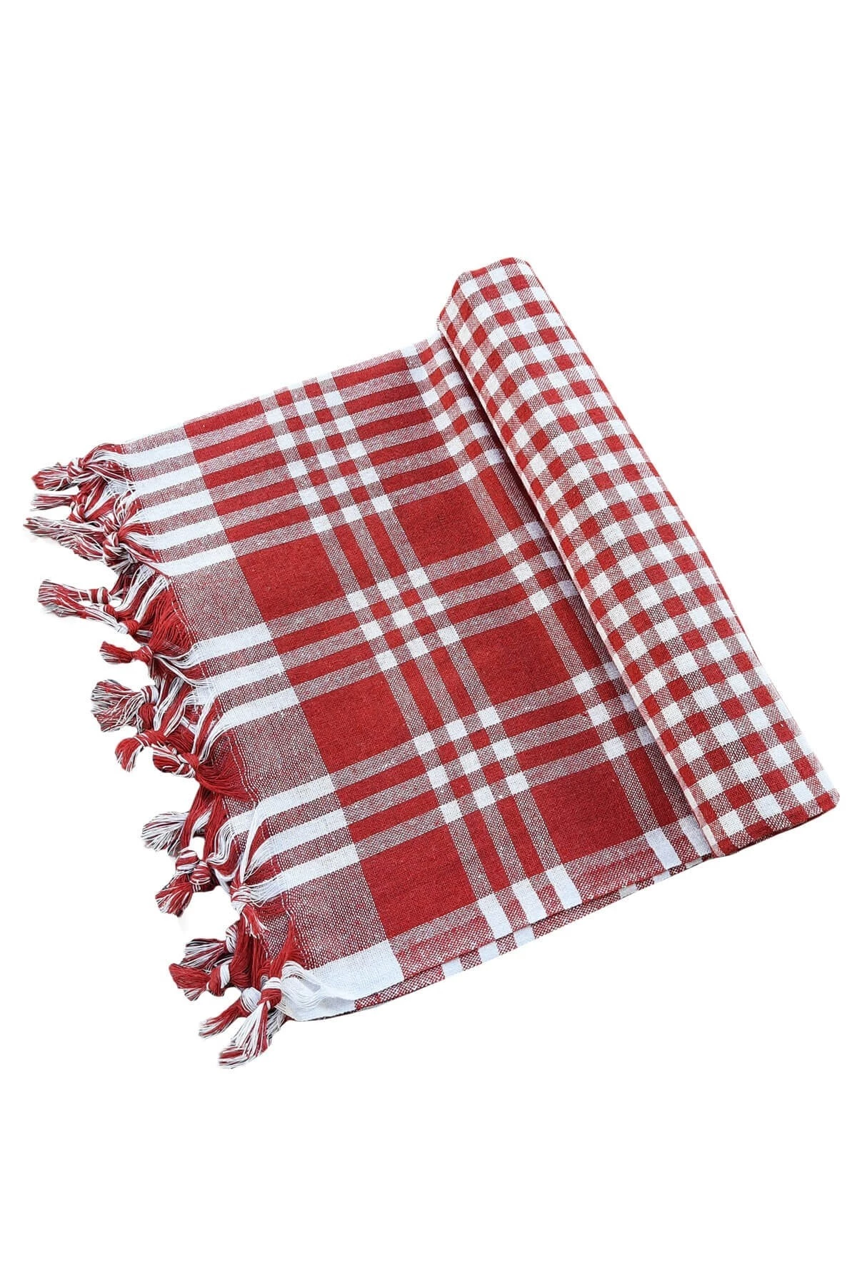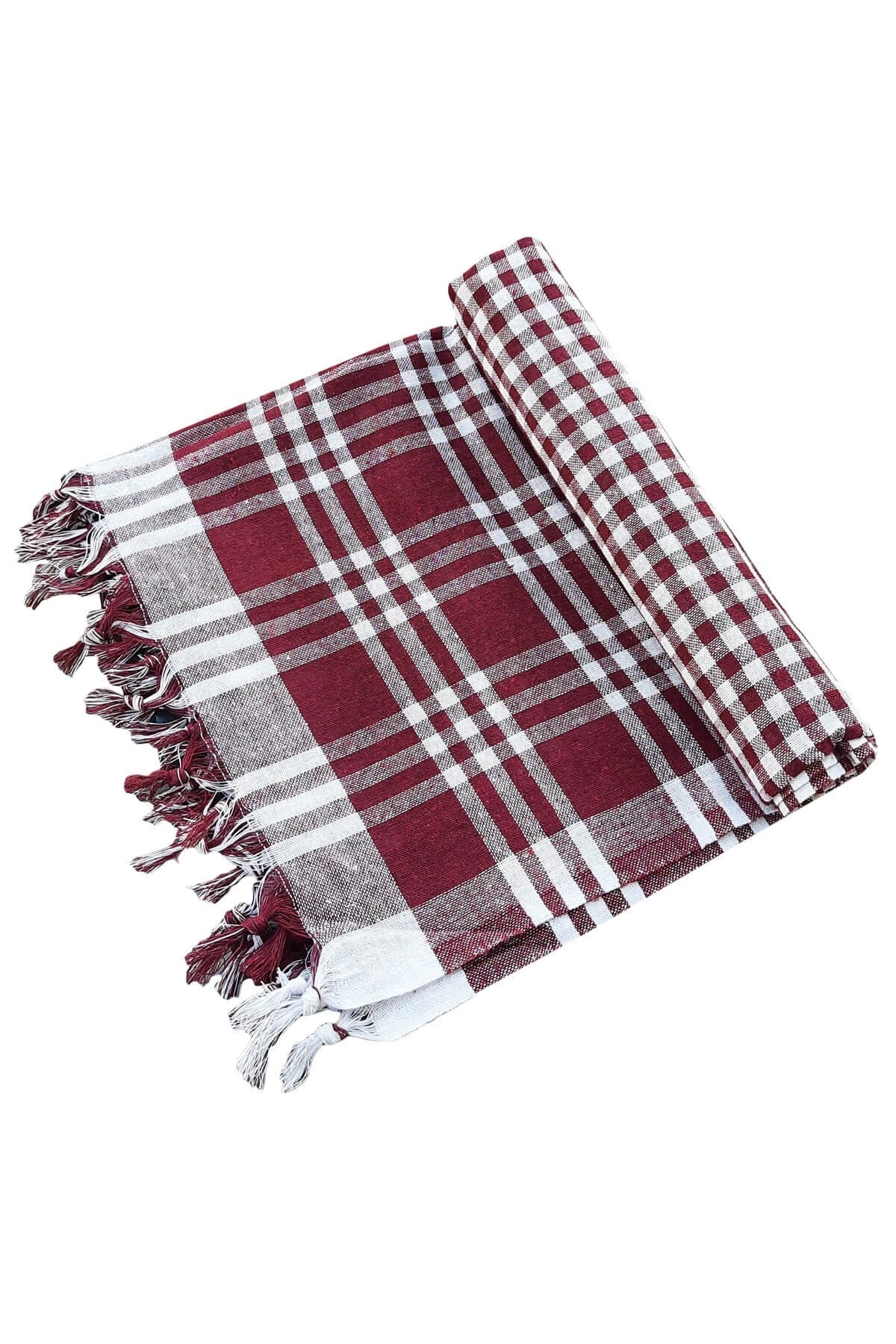 170x170 Pötikare Yer Sofra Bezi Piknik Masa Örtüsü Saçaklı Bordo