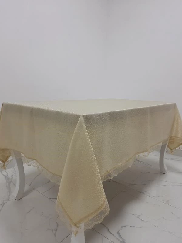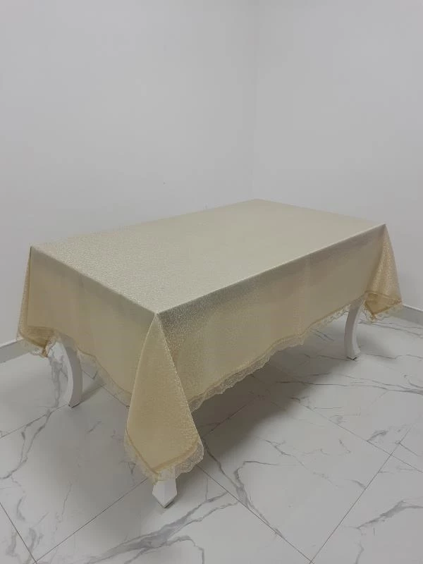 Finezza Paris Jakarlı Kumaş Güpürlü Bej Masa Örtüsü Dikdörtgen 160*220 cm - 963