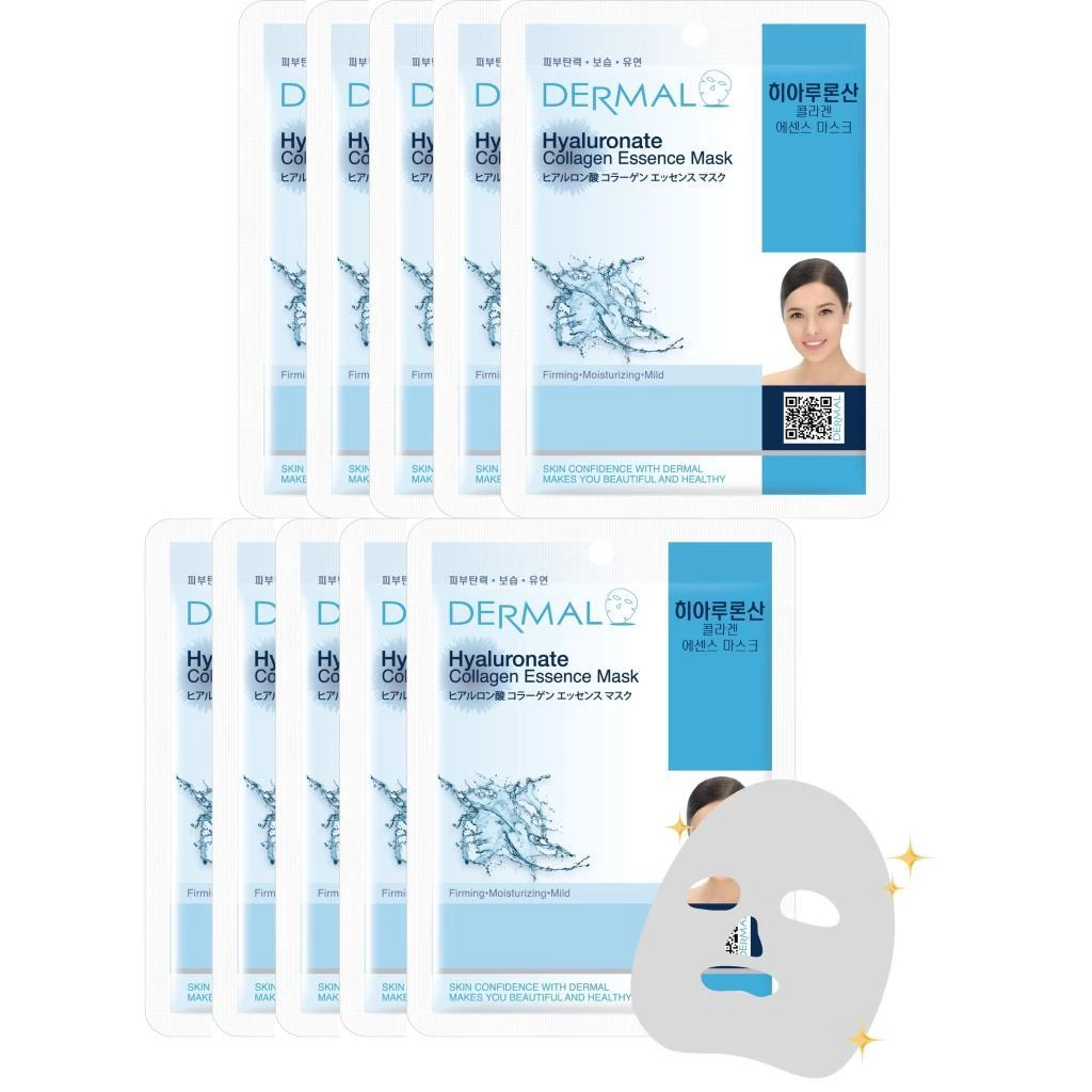 Dermal 10'lu Hyaluronate Kolajen Özlü Tek Kullanımlık Cilt Bakım Maskeleri