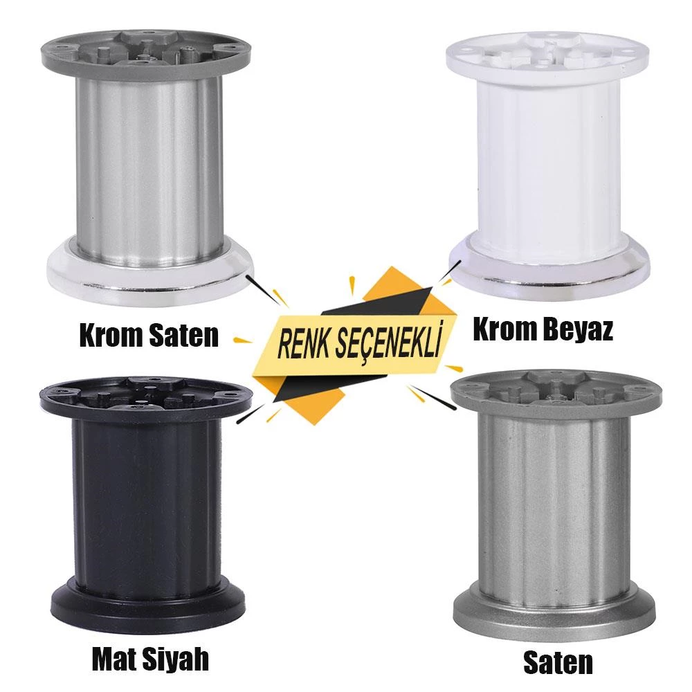 Mobilya Masa Puf Sehpa TV Ünitesi Ayağı Baza Ayak 8 cm Krom Beyaz