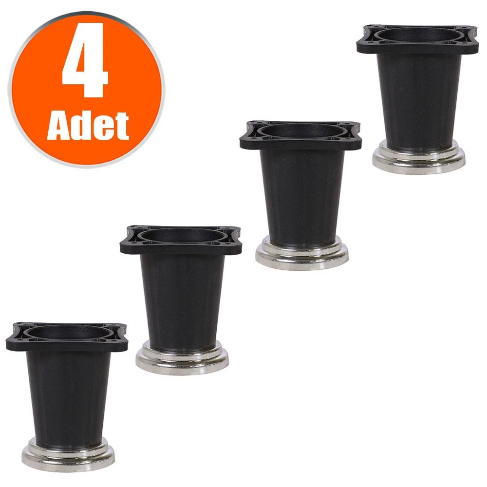 Yıldız Mobilya Masa Puf Sehpa TV Ünitesi Ayağı Siyah Krom Baza Ayak 8 cm (4 Adet)