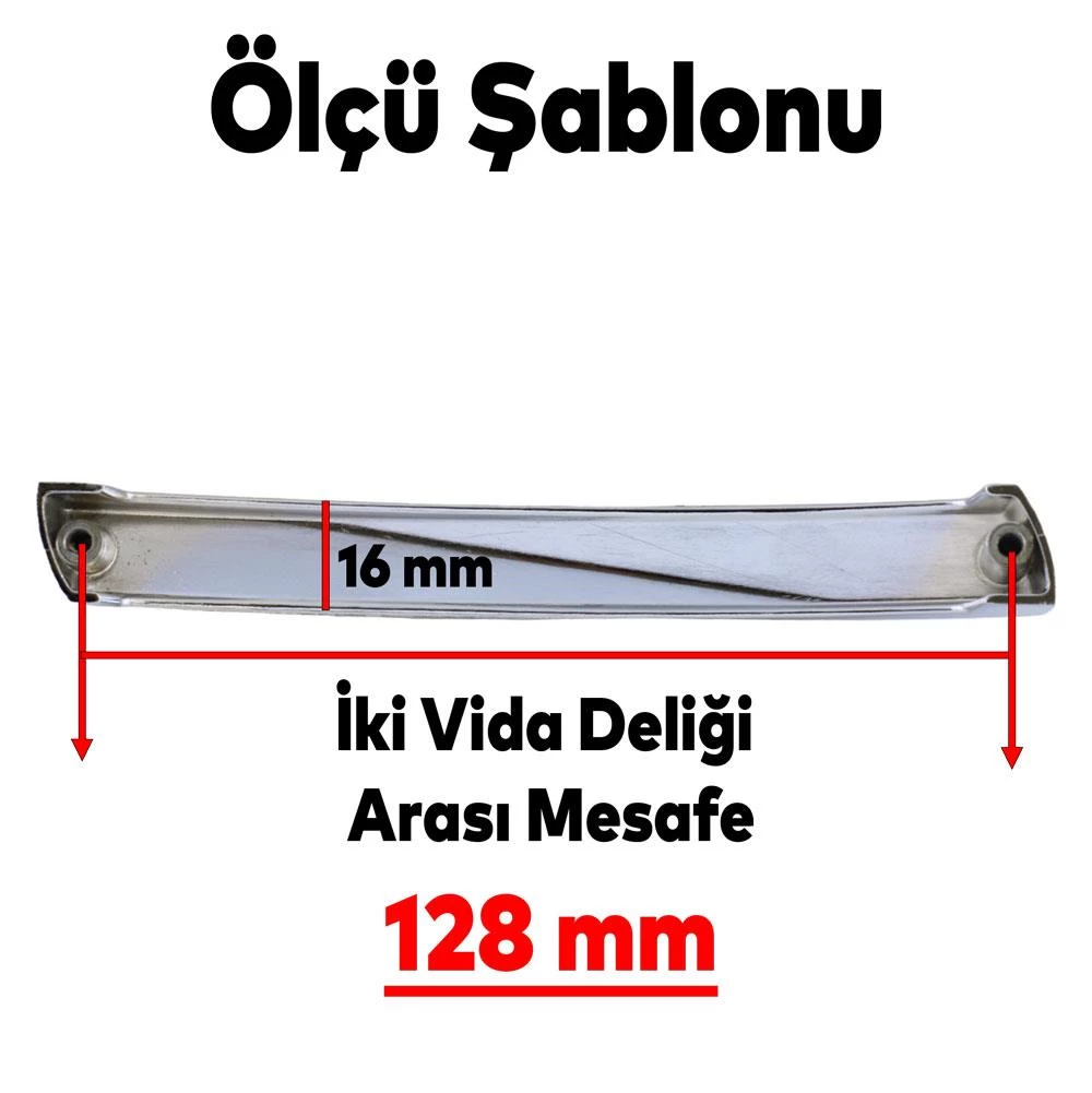 Dolap veya çekmecenizin vida giriş yerleri arasındaki mesafeyi metre ile ölçünüz. Kulp ölçüleri standarttır. (Ürüne ait detaylı ebat bilgisine ürün görsellerinden ulaşabilirsiniz)