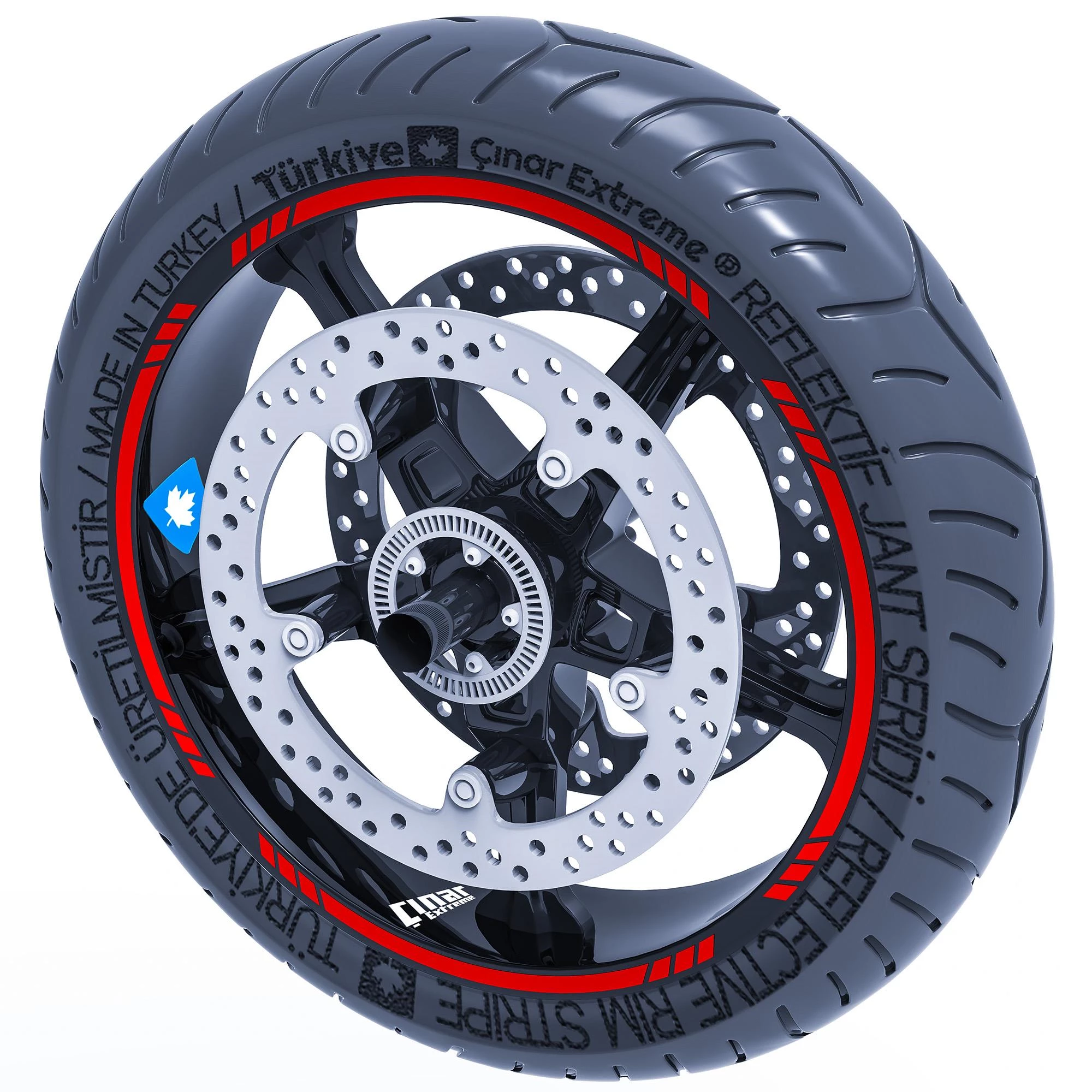 Reflektif Kırmızı 4 Parçalı Kesikli Jant Şeridi Sticker Çınar Extreme