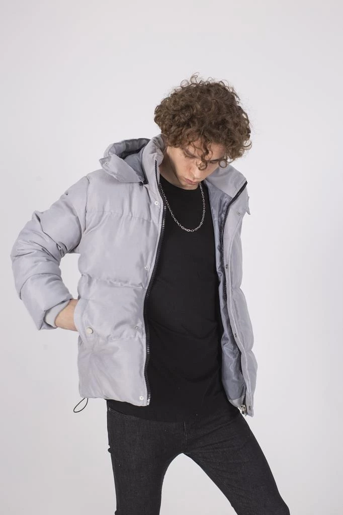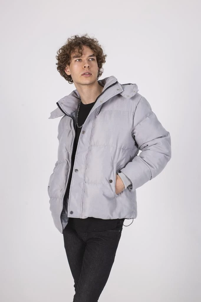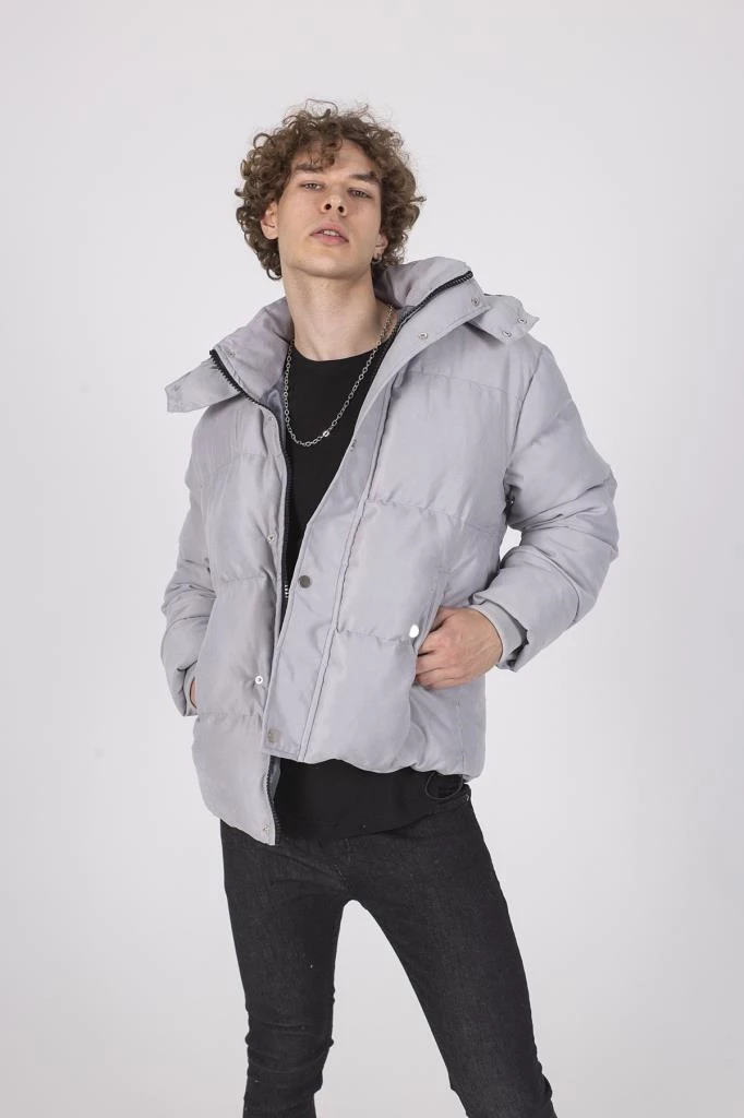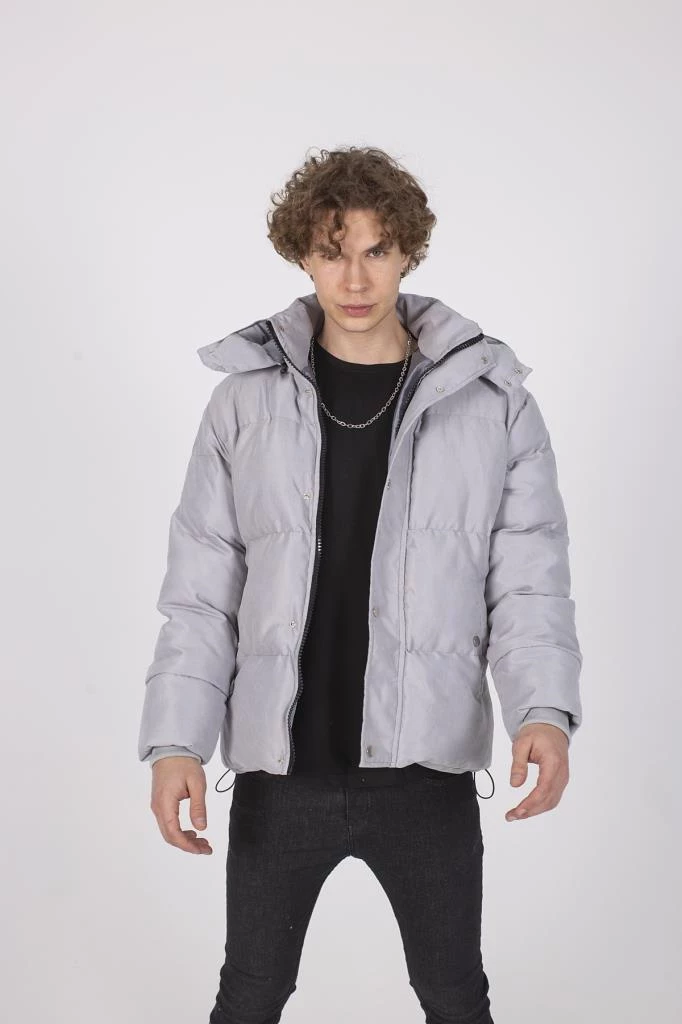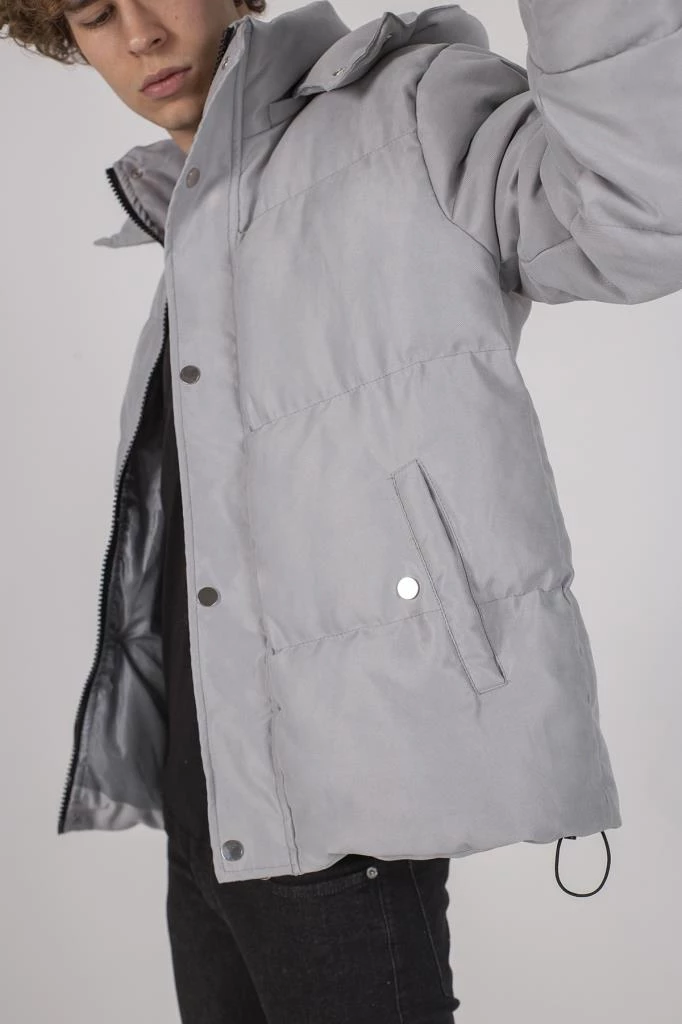 Erkek Cepleri Cıtcıtlı Gri Gabardin Şişme Mont