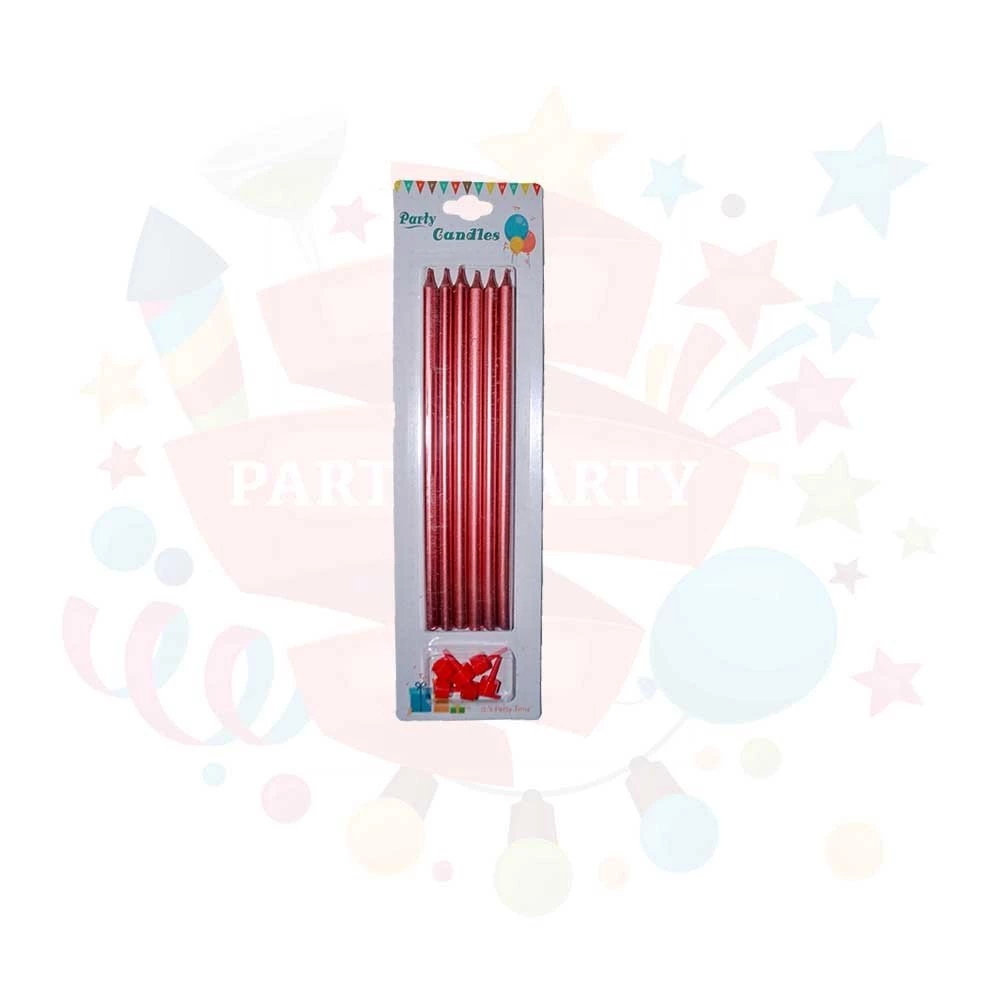 Needion - Mum 18 cm İnce Uzun 6 Lı Kırmızı