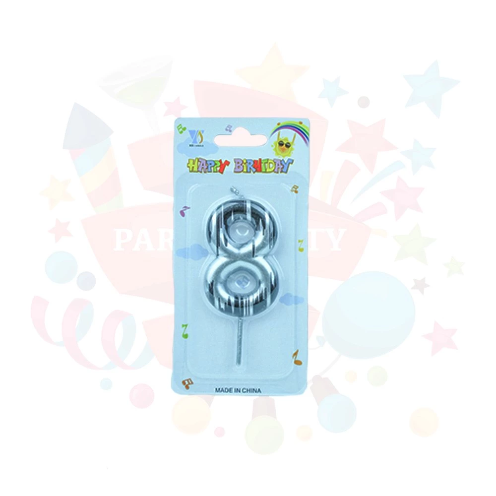 "Mum Rakam Gümüş Siyah 8 ''ürünümüz yapacağınız iç ve dış mekan organizasyonlarınız da konseptiniz de bulunan diğer parçalar ile harika bir uyum sağlayacaktır. Doğum günü ve kutlama pastalarınızda rahatlıklave severek kullanabileceğiniz, ürünümüz şık ve farklı görüntüsü sayesinde vazgeçilmez mum çeşitlerimizden olacaktır.