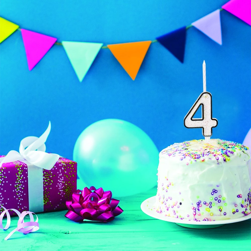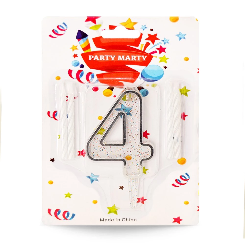 Paket içerisinde şeffaf rakam ve 4 adet pasta mumu bulunmaktadır.