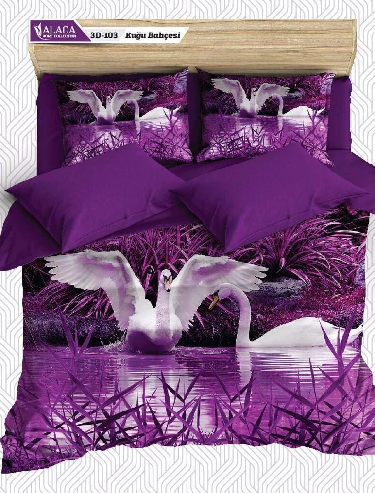 Alaca 3D Digital Baskılı Saten Çift Kişilik Nevresim Takımı 103-Kuğu Bahçesi