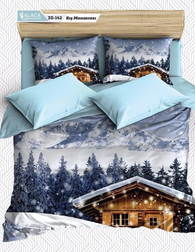 Alaca 3D Digital Baskılı Saten Çift Kişilik Nevresim Takımı 142-Kış Manzarası
