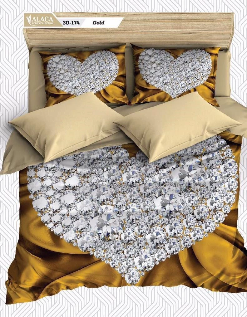 Alaca 3D Digital Baskılı Saten Çift Kişilik Nevresim Takımı 174-Gold