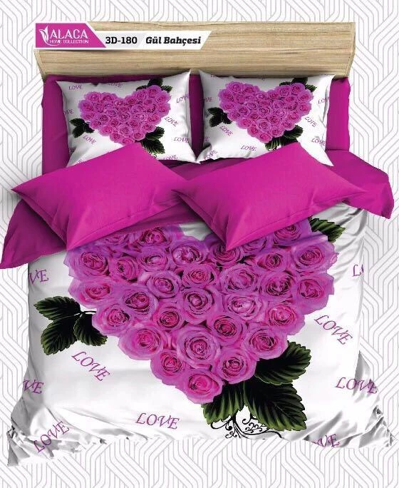 Alaca 3D Digital Baskılı Saten Çift Kişilik Nevresim Takımı 180-Gül Bahçesi