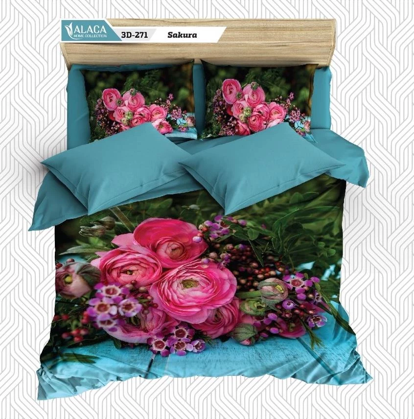 Alaca 3D Digital Baskılı Saten Çift Kişilik Nevresim Takımı 271-Sakura