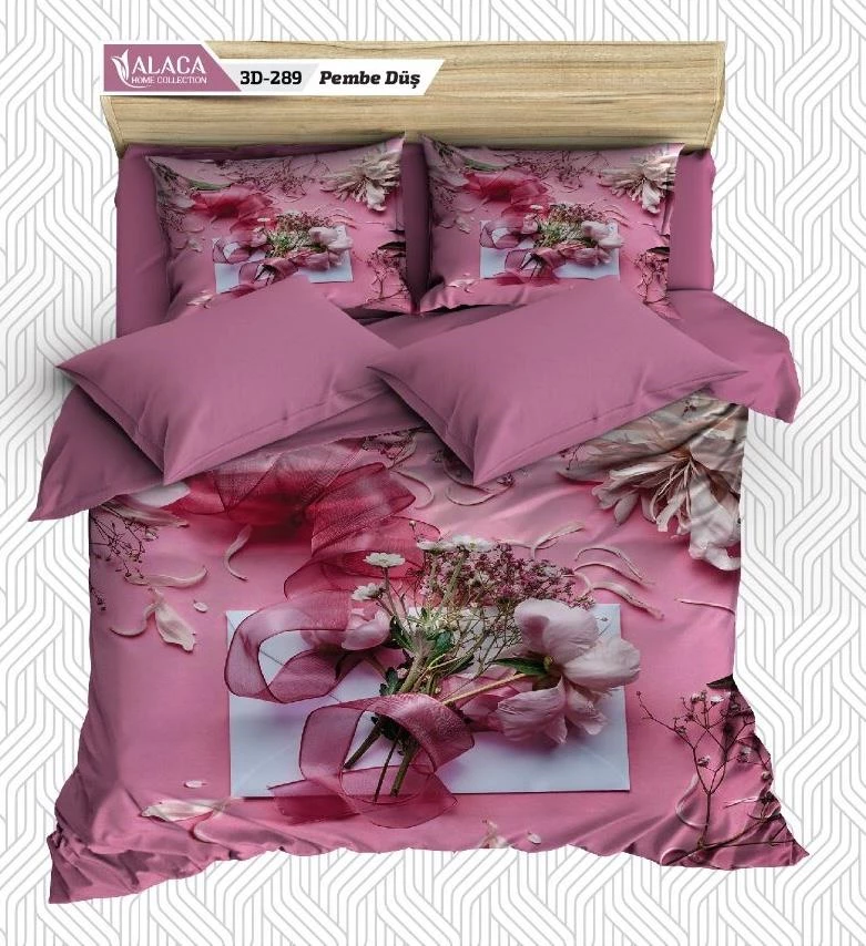 Alaca 3D Digital Baskılı Saten Çift Kişilik Nevresim Takımı 289-Pembe Düş