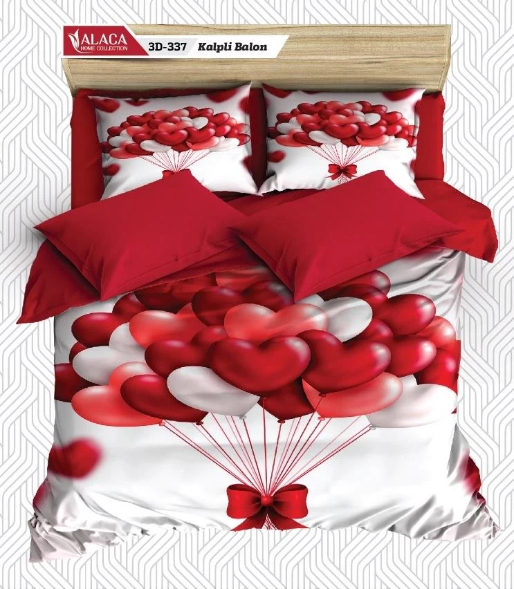Alaca 3D Digital Baskılı Saten Çift Kişilik Nevresim Takımı 337-Kalpli Balon