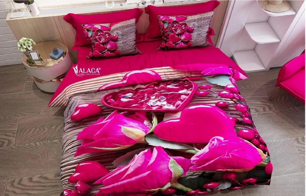 Alaca 3D Digital Baskılı Saten Çift Kişilik Nevresim Takımı 348-Bueme