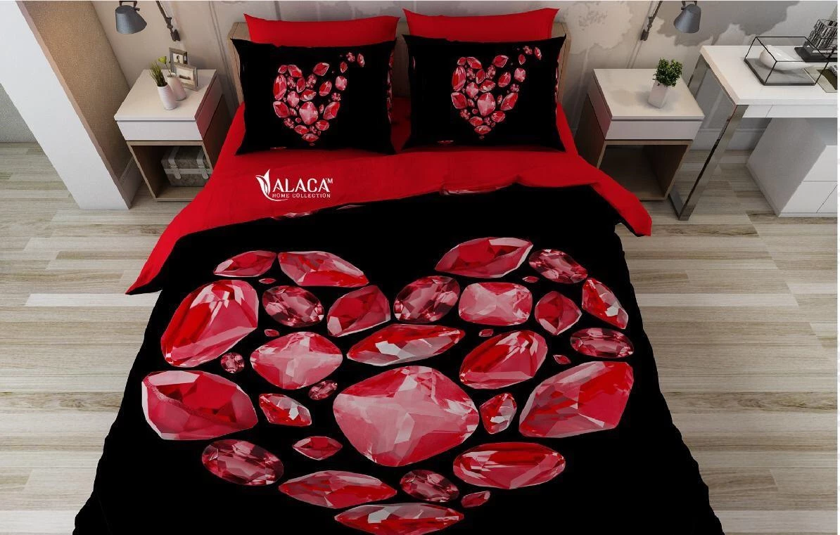 Alaca 3D Digital Baskılı Saten Çift Kişilik Nevresim Takımı 374-Fuleva Black