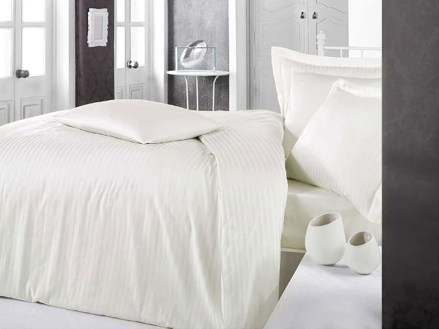 Needion - Clasy Çizgili Saten Nevresim Takımı Çift Kişilik Ekru