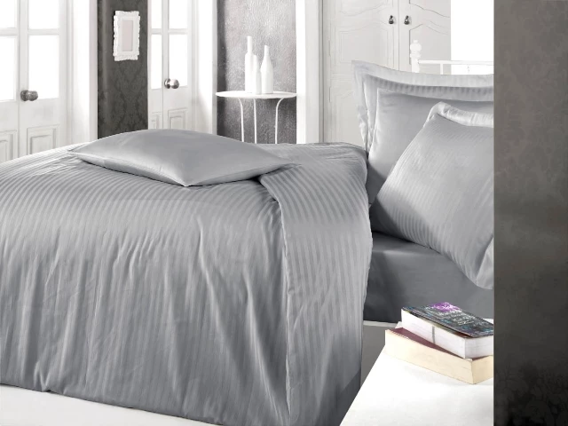 Needion - Clasy Çizgili Saten Nevresim Takımı Çift Kişilik Gri
