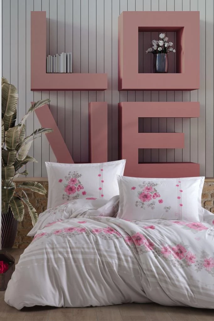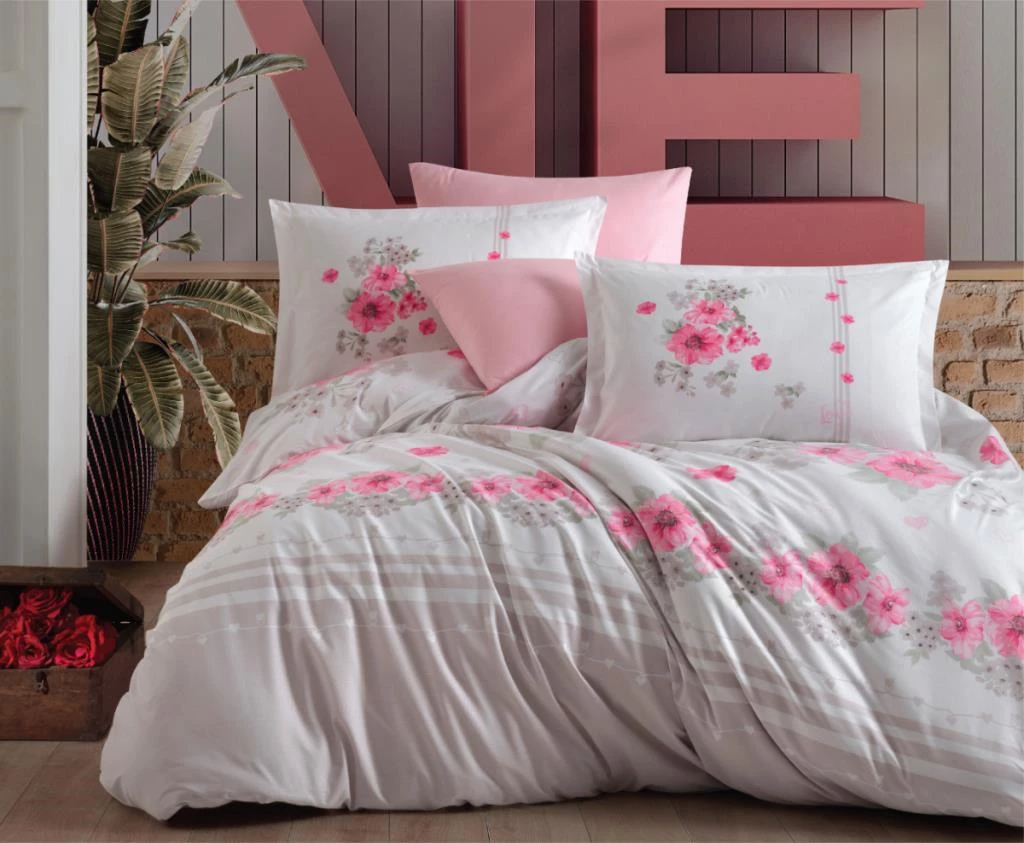 Clasy Ranforce Nevresim Takımı Çift Kişilik Lovers v1 Pembe
