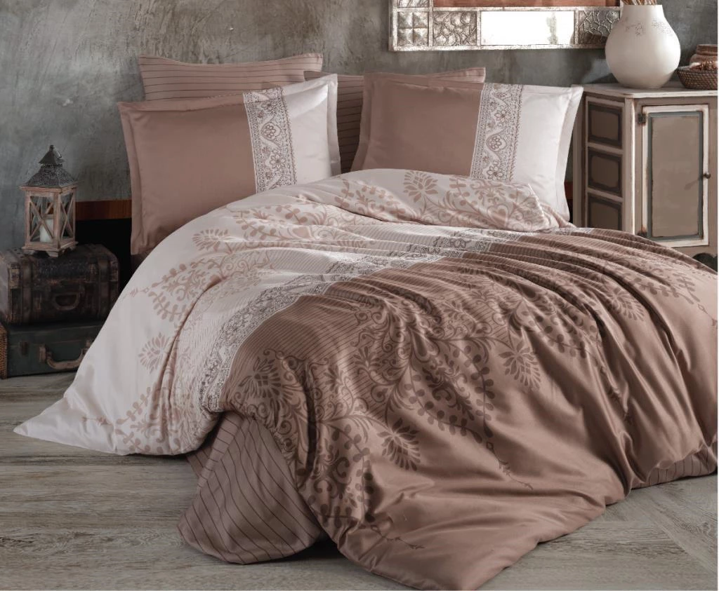 Clasy Saten Çift Kişilik Nevresim Takımı Lalin v1 Kahve