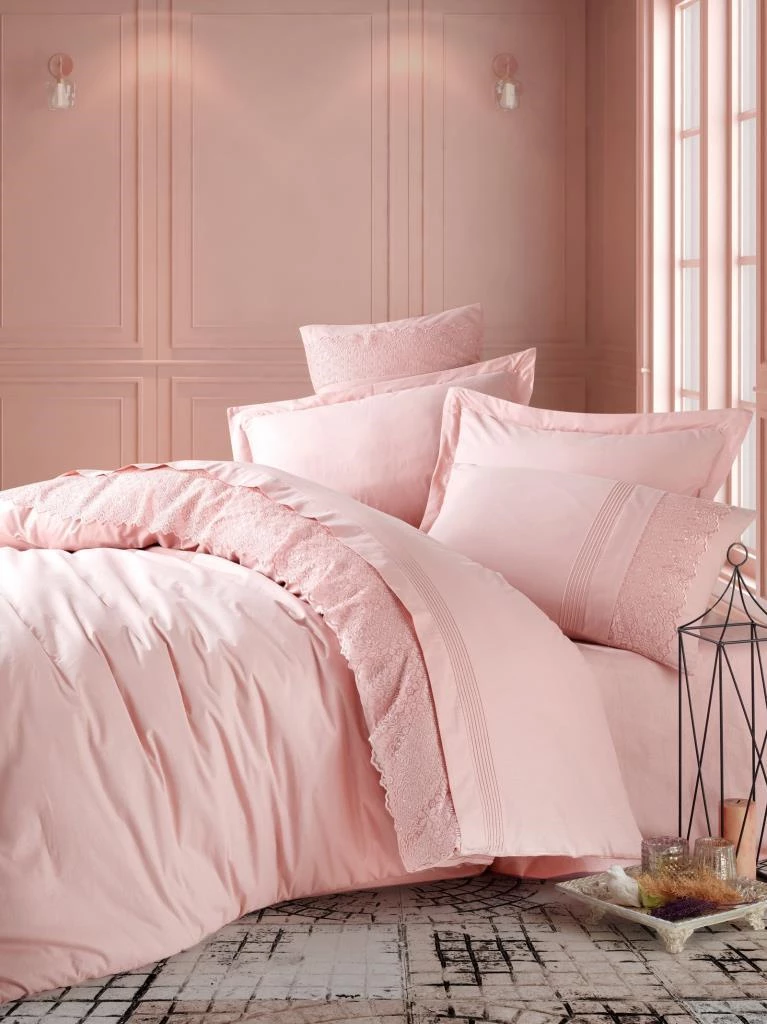 Needion - Cotton Box Brode Ranforce Çift Kişilik Nevresim Takımı Elba Pudra