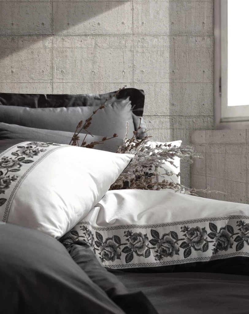 Needion - Cotton Box Folk Art Çift Kişilik Nevresim Takımı Rosinda Gri