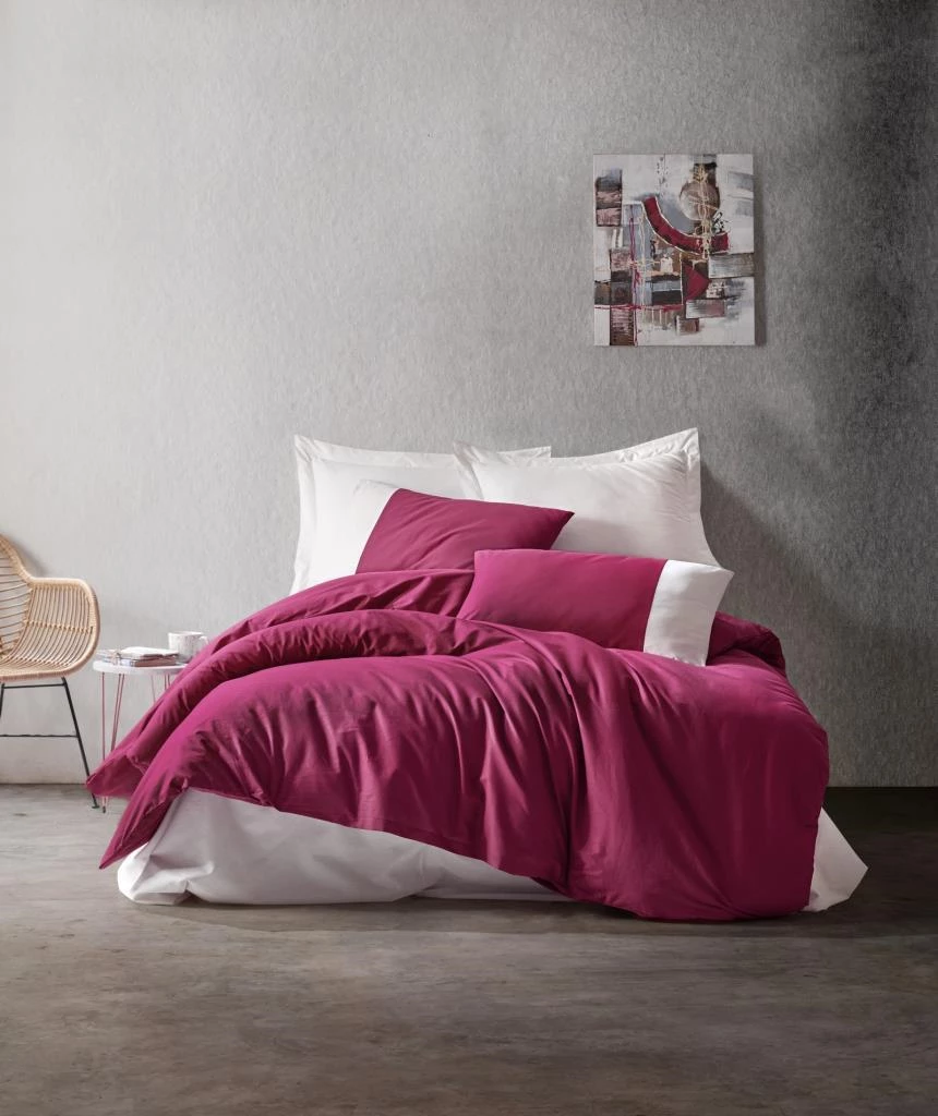 Cotton Box Plain Tek Kişilik Nevresim Takımı Bordo Krem
